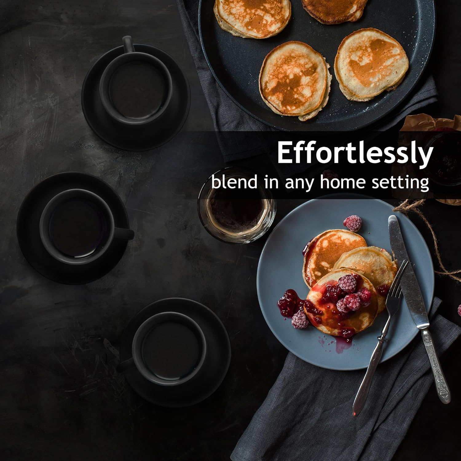 MIAMIO - 2.5 oz Espresso Cup Set with Saucers Coffee Mug Set of 6 - Ceramic Coffee Mug Stackable Espresso Mug with Stand for Coffee Drinks, Latte, Cafe Mocha - Le Papillon Collection (Black)