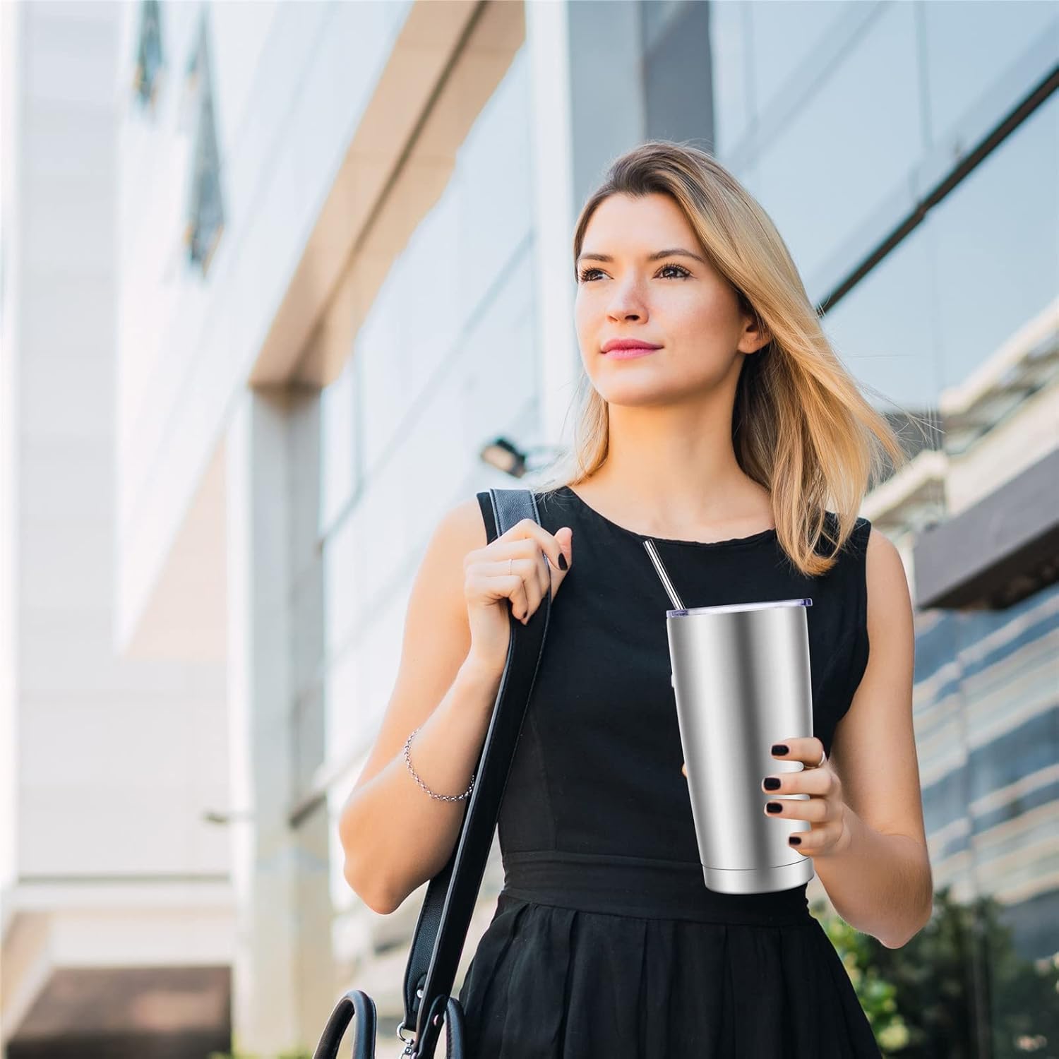 Pandance 20oz Stainless Steel Insulated Tumblers with Lid and Straw Bulk, Double Wall Vacuum Water Cups for Hot & Iced Coffee Drinks Travel Mug (Silver, 12 pack)
