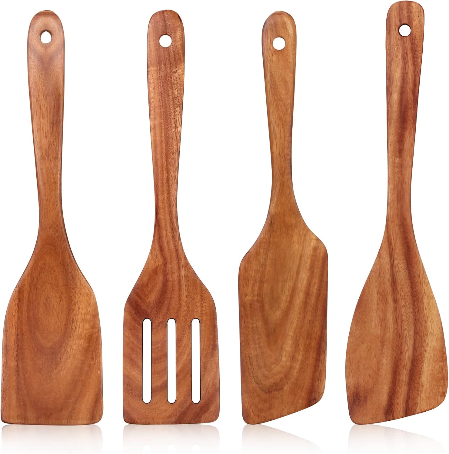 - Best Teak Wood: These wooden utensil set are made of natural teak wood, because of the uniqueness of the wood, it appears unique original color and grain. No BPA, PVC or toxic finishes.