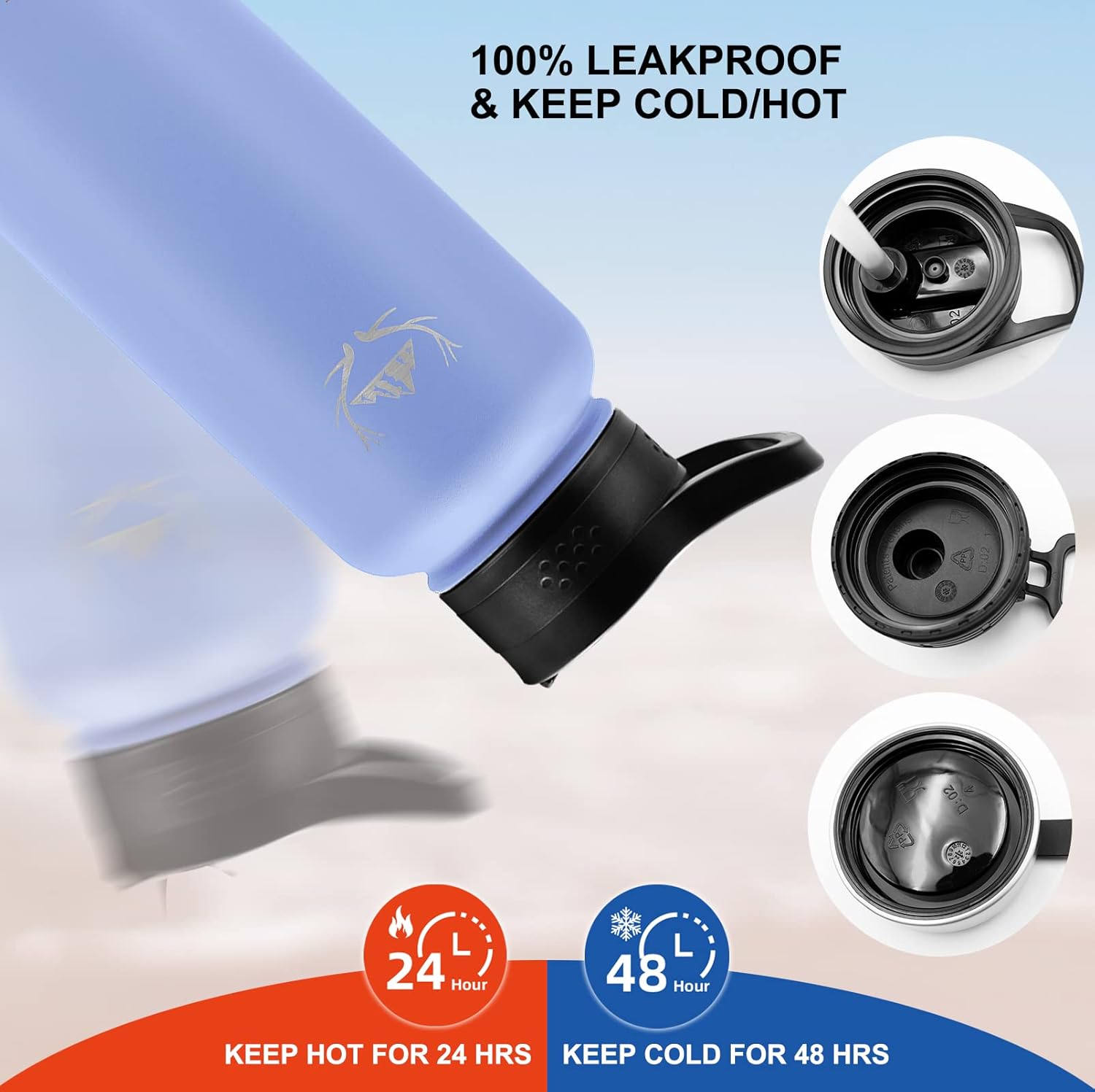 - 【Triple-Layer Vacuum Insulation】 – This insulated water bottle is engineered with triple-wall, vacuum-sealed insulation and made from premium 18/8 food-grade stainless steel. This advanced design locks in temperature, keeping drinks ice-cold for up to 48 hours or steaming hot for up to 24 hours. The no-sweat exterior prevents condensation and protects your hands from heat or frost, making it reliable for outdoor sports, travel, camping, and daily hydration