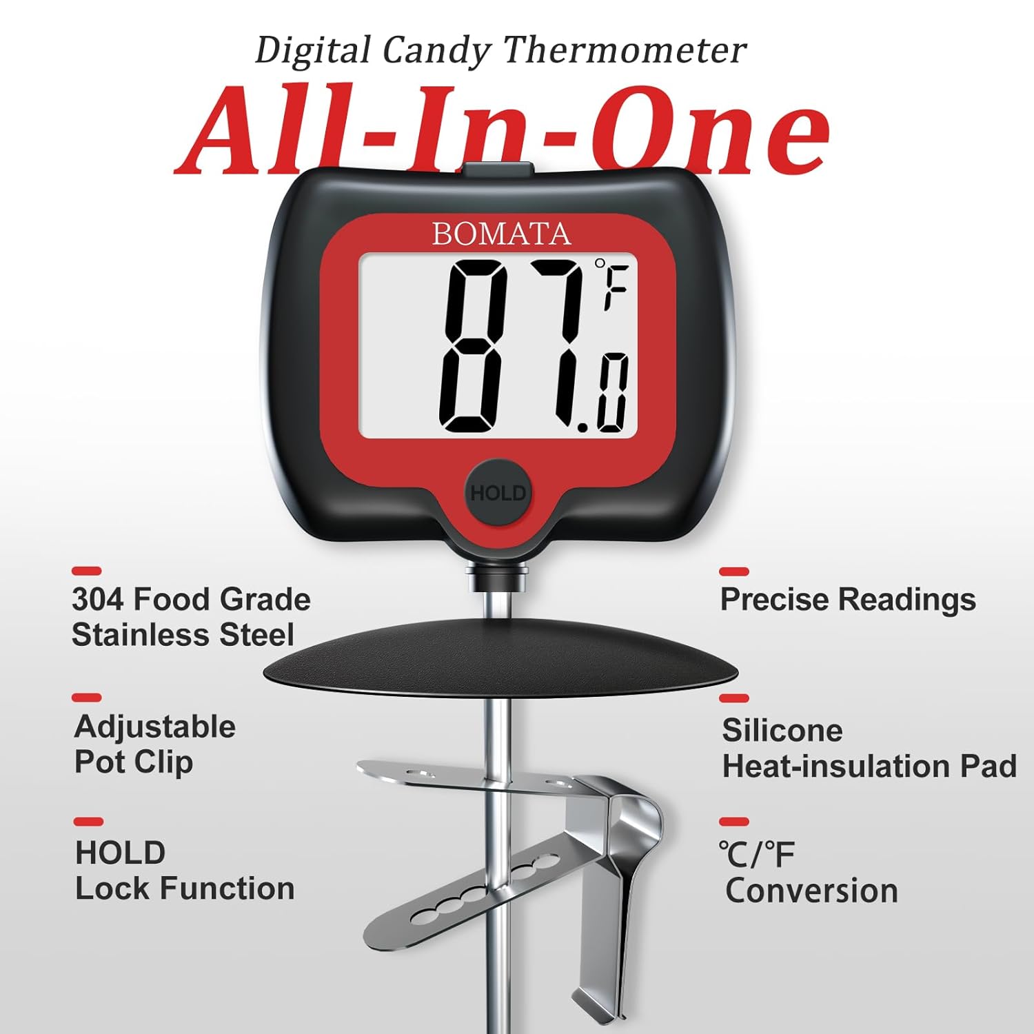 BOMATA Digital Candy Thermometer with Pot Clip, Deep Fry Oil Thermometer with Rotatable Display & Long Probe, for Candy Candle Making, Cooking, Food, Liquids, Water, Sugar.. Black
