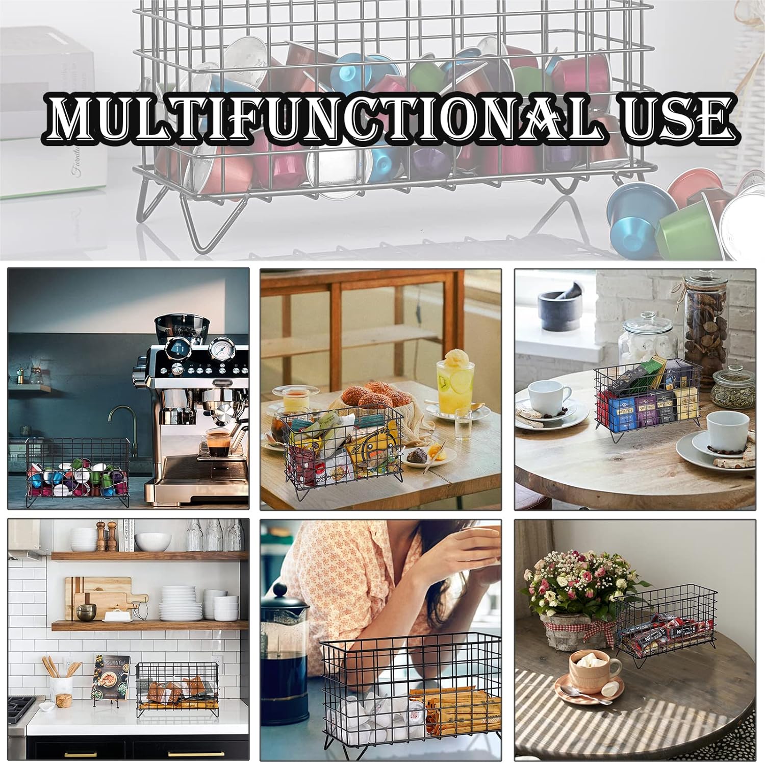 - ☕MULTI PURPOSE - This metal storage basket is not just designed for coffee pods, it is also great for sweeteners, milk balls, snacks and even be a table organizer.Also can be a berry basket, such as storaging strawberries, cherries, cherry tomatoes.