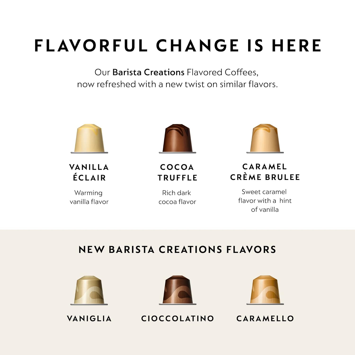 - SAVOR WITH MILK: As a cappuccino, this Nespresso flavored coffee blend gains creaminess and develops more biscuity, caramel and nutty notes on top of its vanilla flavor