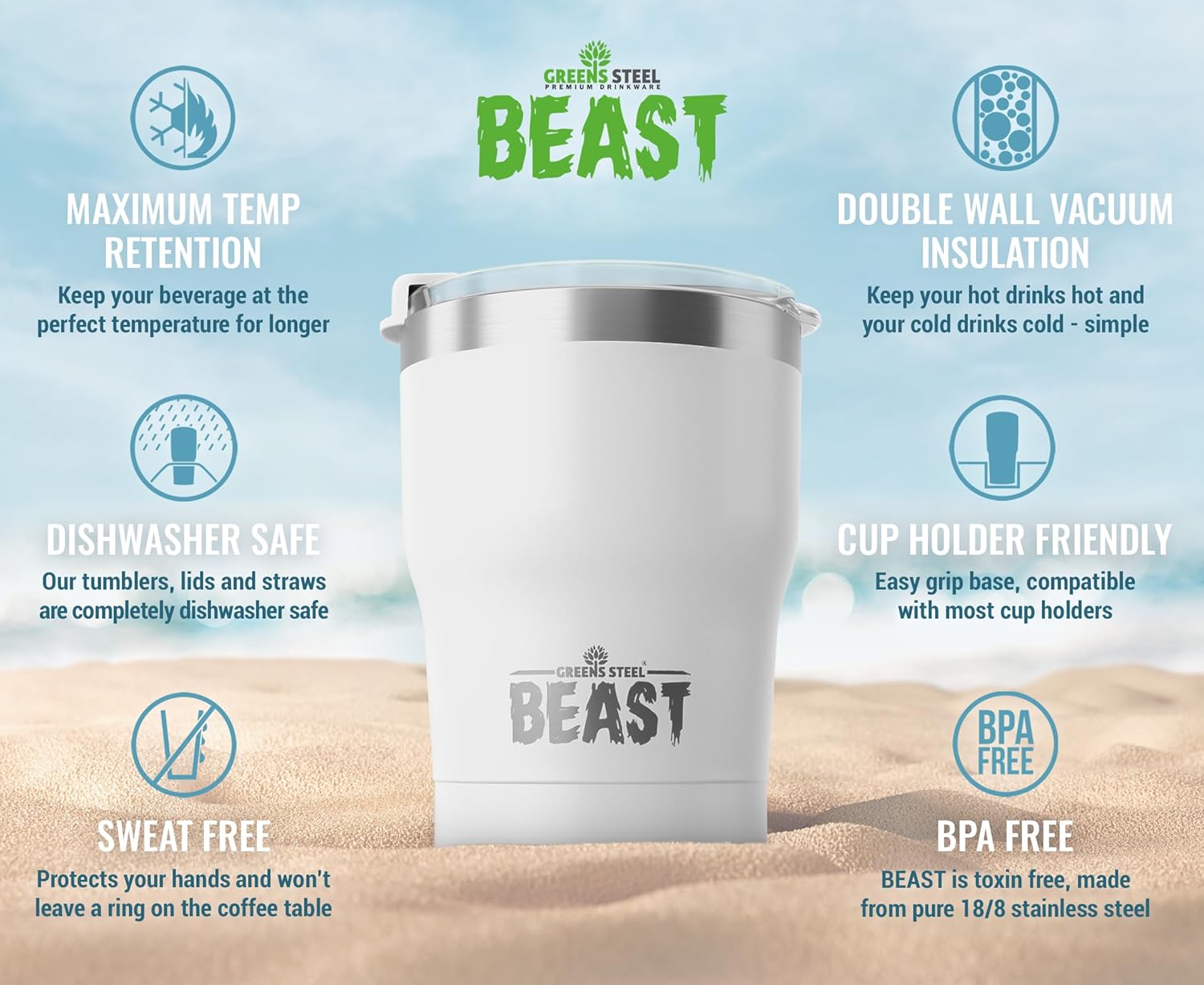- TOP QUALITY & 100% SATISFACTION - Enough of the cheap plastic & second rated tumblers on offer. We know you deserve the best and that's why our products and service is second to none. Every Greens Steel Product is backed by our commitment to your complete satisfaction. Order now and put us to the test! Don't settle for any less.