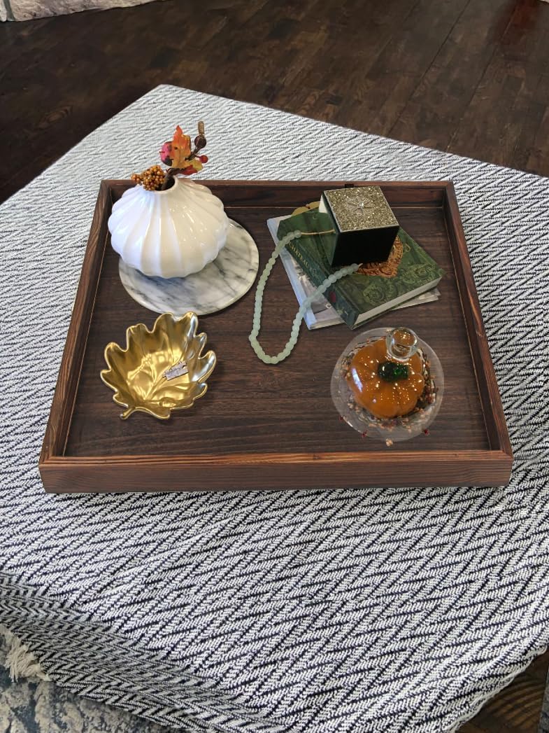 - 🌷 KING SIZE OTTOMAN TRAY - the dimension is 20 x 20 x 1.6 inches. Perfect size for as serving tray, decorative tray, ottoman tray and coffee table alternative to hold drinks, snacks, books, or decor items; serve as a convenient serving area, use it to hold appetizers, drinks, or even a small buffet setup.