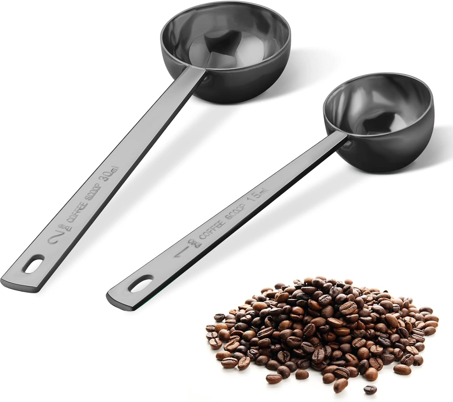 Premium Coffee Scoop Set, Set of 2, Metal Stainless Steel Long Handle Coffee Scoop, Measuring Coffee Spoons Contains 1 Tablespoon (15 ml) and 2 Tablespoons (30 ml) Spoon-Black