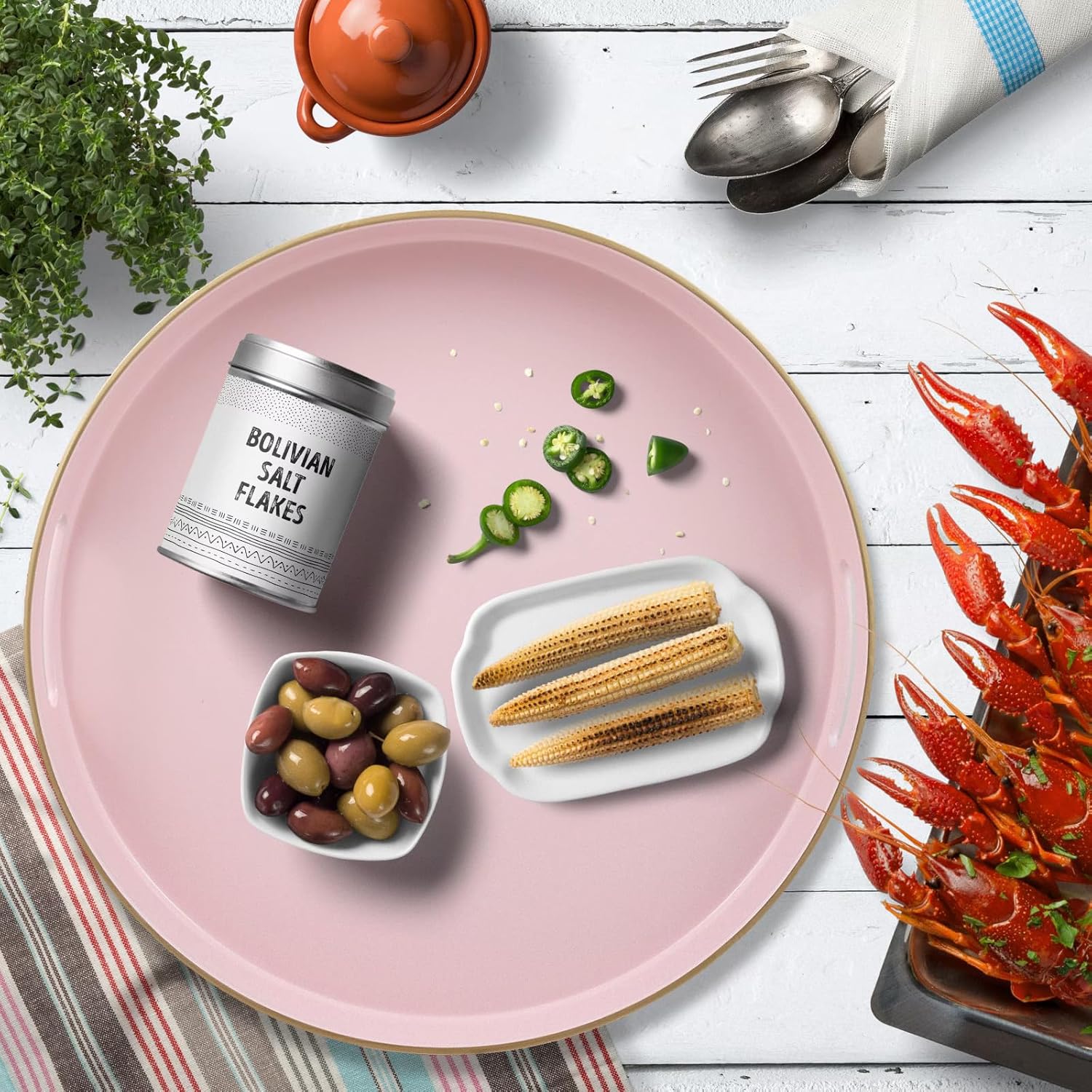 Pink Round Decorative Tray with Handles, 13" Versatile Serving Tray for Coffee Table, Ottoman, Ideal for Serving, Displaying, Organizing