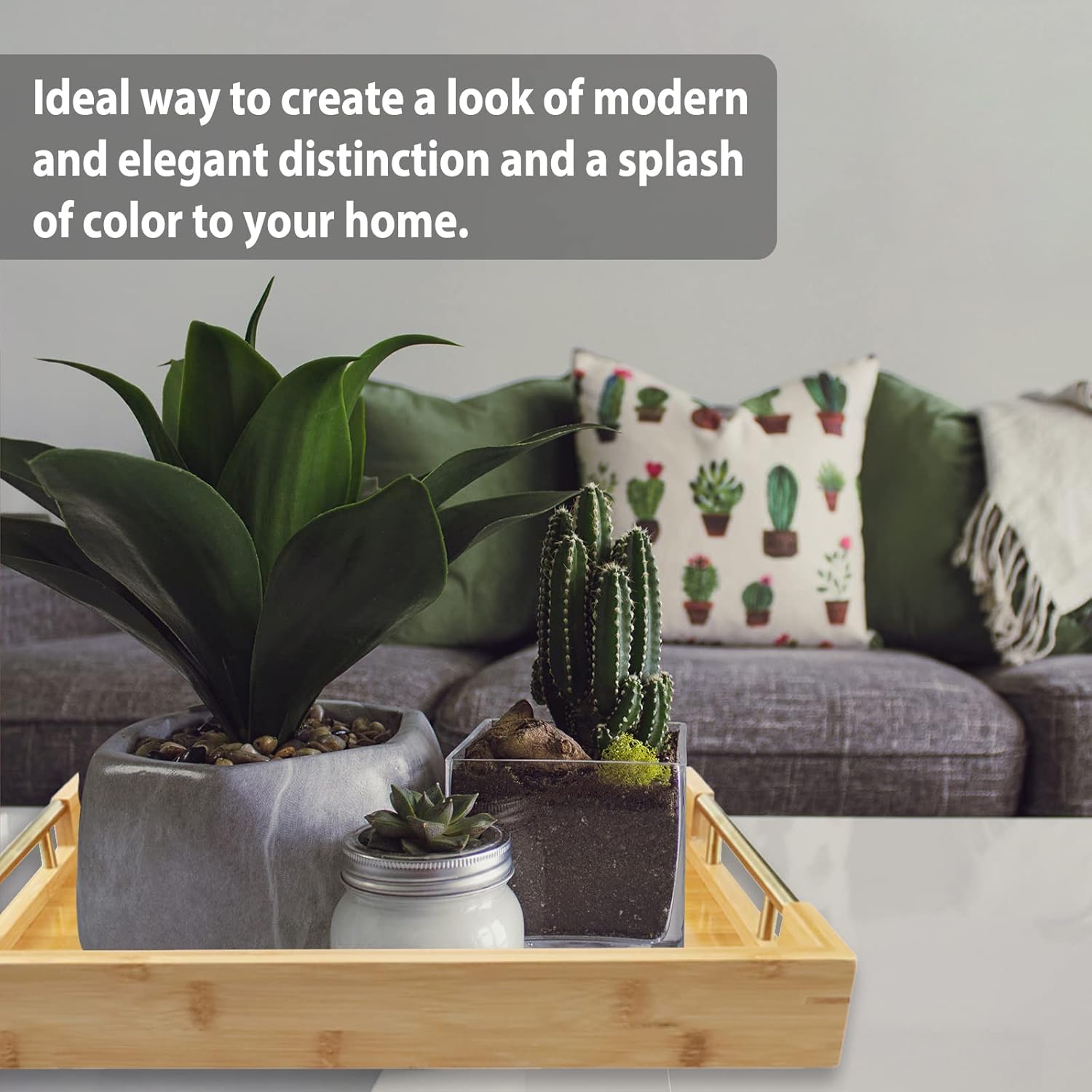 - Versatile & Stylish Tray- Ideal for eating, working, decorating and storing, this multi-functional rectangular bamboo serving tray is either serving small food & drink or organizing your favorite home goods like display candles, jewelry, makeup, perfume, candies, books, fruits, vegetables, bar ware & beyond.