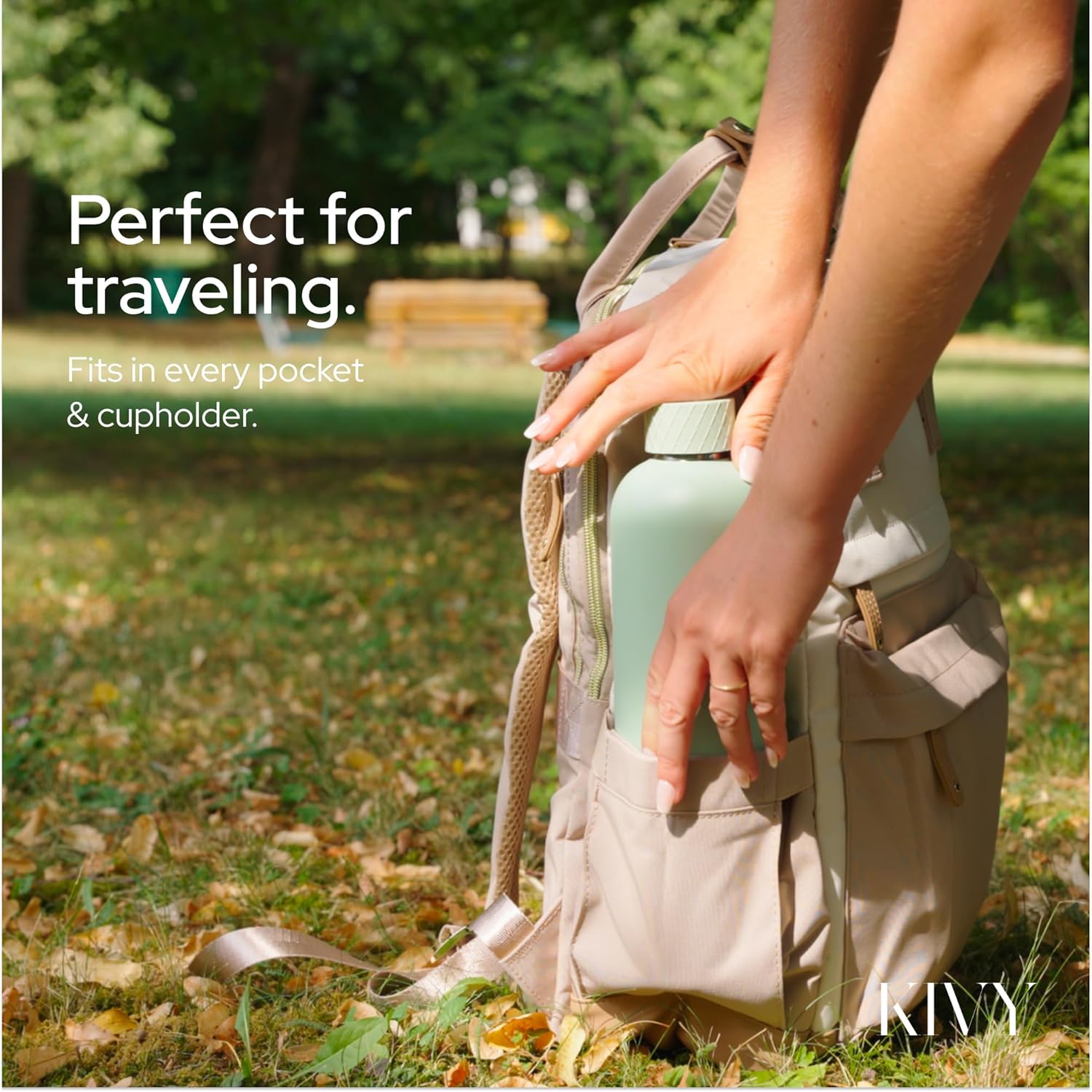 KIVY Stainless Steel Insulated Water Bottle 32oz | Slim Water Bottle for Travel, Car, Gym, Cupholder, Backpack side pocket - Slim water bottle no straw - Skinny water bottle screw top