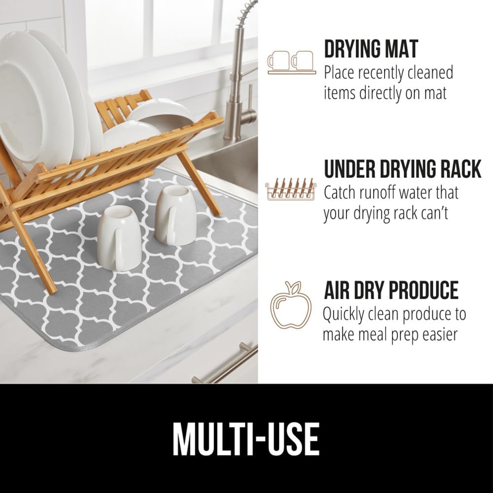 GORILLA GRIP Ultra Water Absorbent Microfiber Dish Drying Mat, Quick Dry Thick Mesh, Slip Resistant Pad for Sink Dishes or Under Rack, Kitchen Counter Accessories, 16x18, Machine Wash Mats, Quatrefoil
