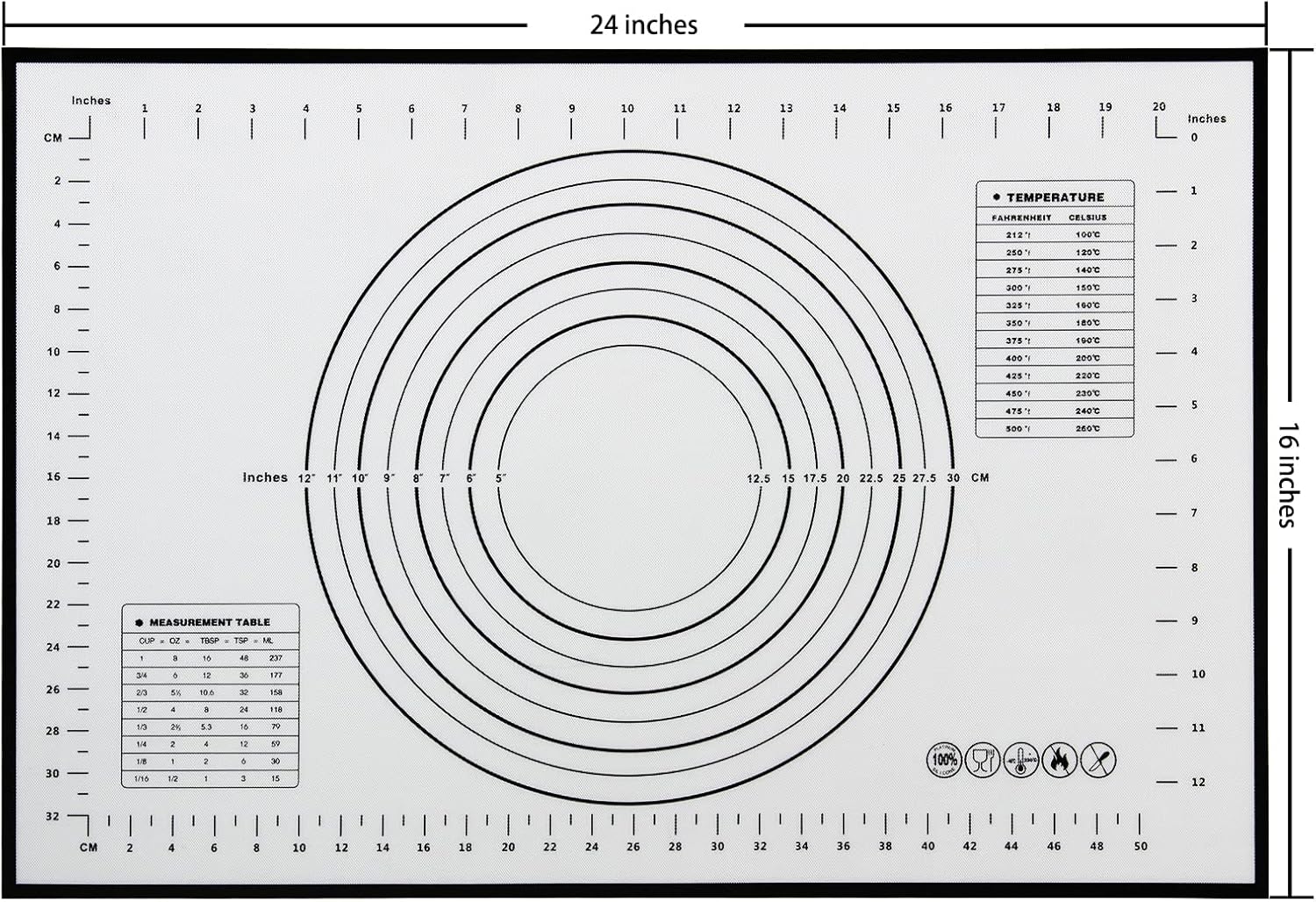 - MULTIPLE PRECISE MEASUREMENT MARKERS:With a special scale for baking pastry, it is convenient to measure, roll out pie dough and pizza crust is easy, and cut dough more worry-free.