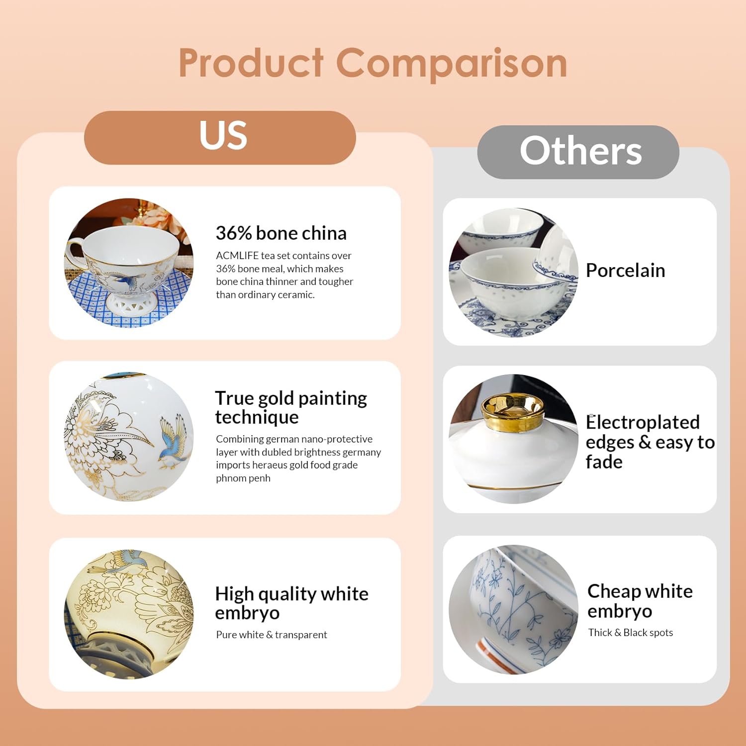 - Better Gift Option: ACMLIFE tea set gift for 6 is well packaged with gift box, which is the warmest care for friend and family. Especially on birthday party, housewarming, wedding, Mother's day, Father's day, Christmas or Valentines etc.