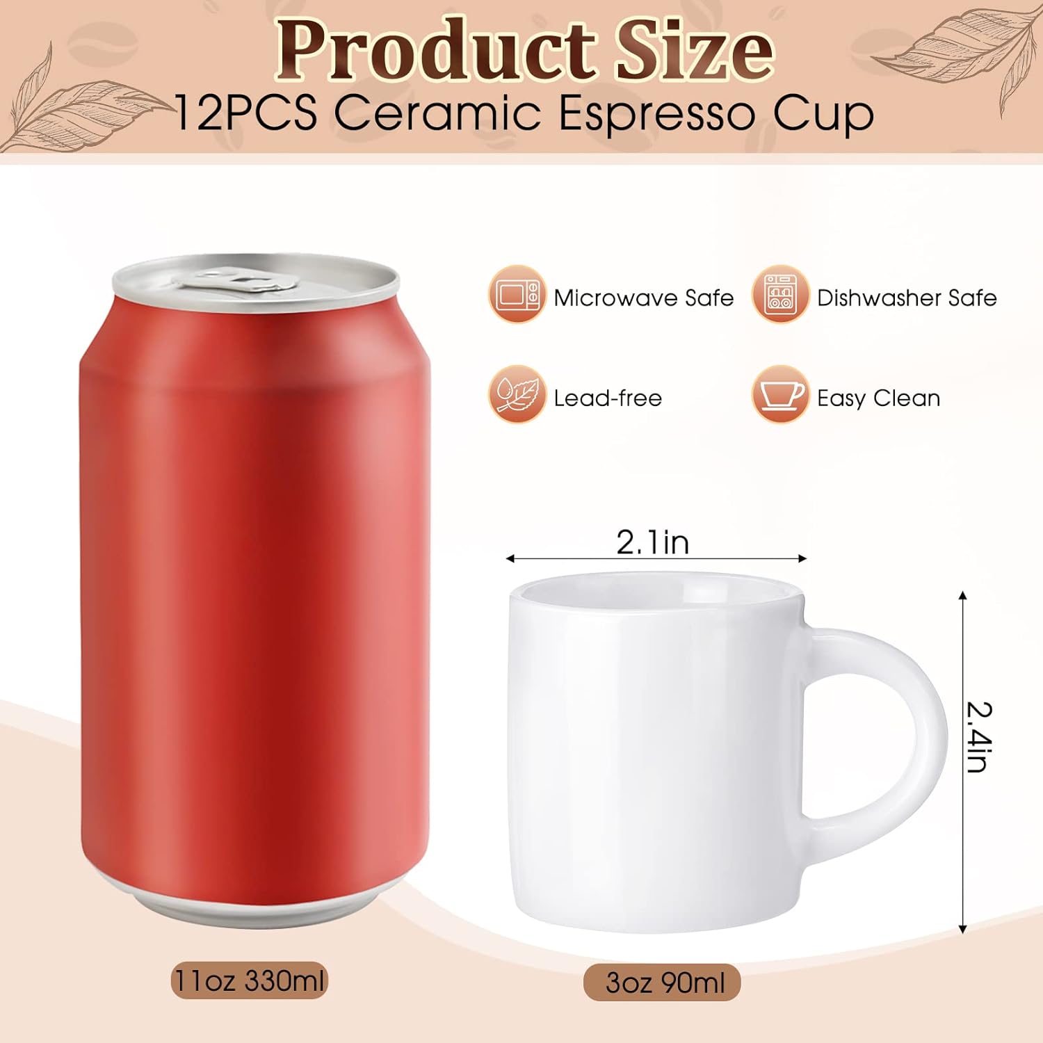 - Suitable Size: the capacity of this small coffee cup is about 3 oz/ 90 ml, approx. 2.09 inches/ 5.3 cm in top diameter, approx. 2.13 inches/ 5.4 cm in bottom diameter and approx. 2.36 inches/ 6 cm in height, which is not too big not too small, suitable for your favorite milk, coffee and other drinks, so that you can drink them all at once, without wasting