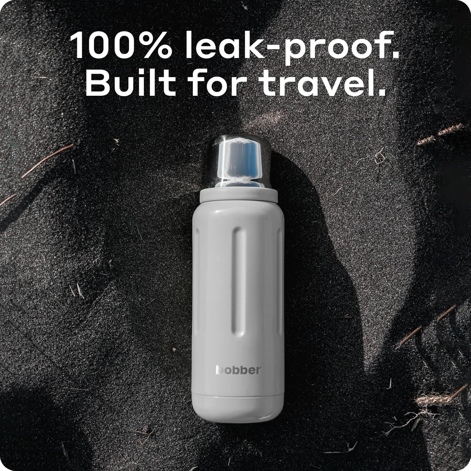 BOBBER 26 oz Stainless Steel Thermos for Hot Water with Cup – BPA-Free, Dishwasher Safe Coffee Thermos Flask – Keeps Hot for 36 Hours – Vacuum Insulated Hot Water Flask for Men, Tea (Sand Grey)