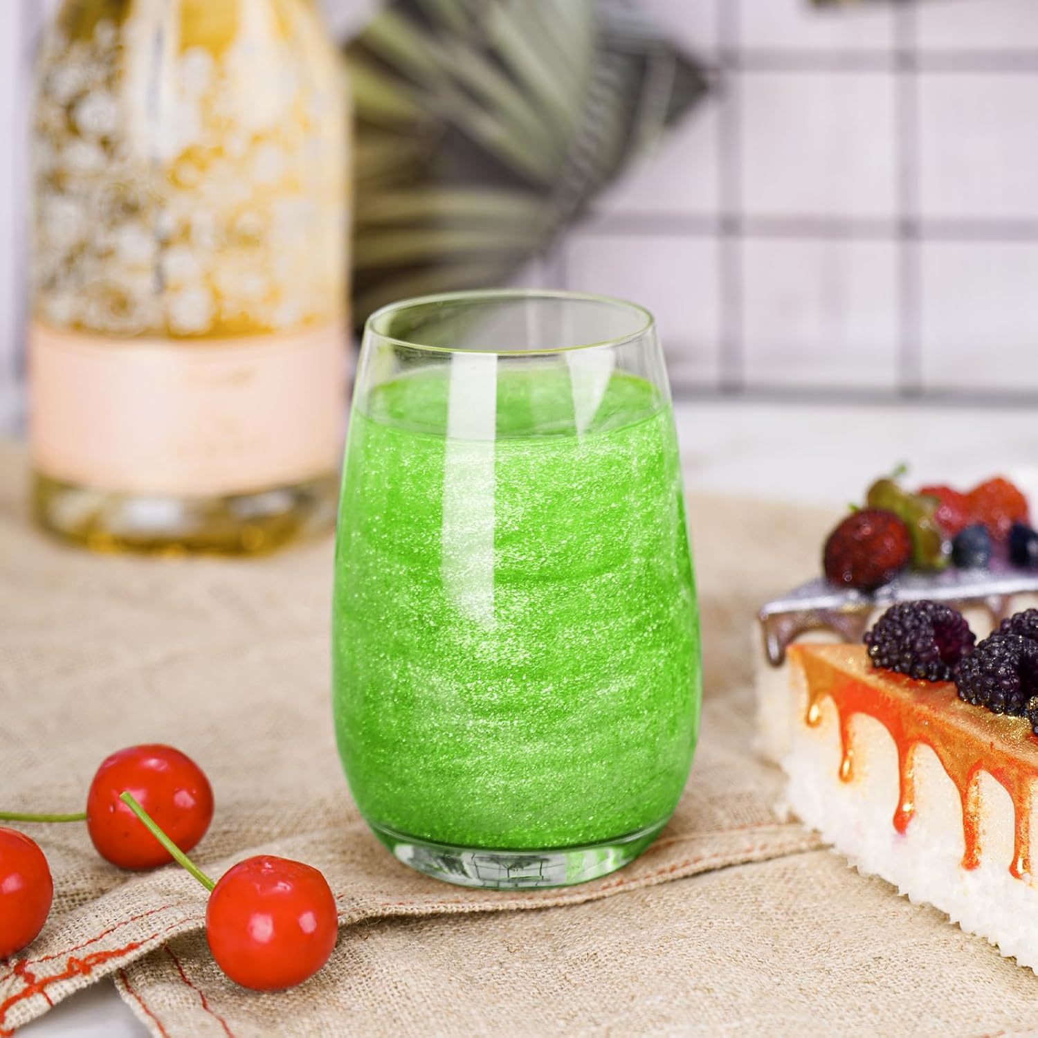 - ✔️【Use with Brews】Food-grade glitters are so fun and simple to use with brews. Add one pinch or two directly to your favorite beverage, mix it with cocktail syrups, juices, liqueurs, liquors, or spirits. Use a clear glass instead of opaque containers so that the liquid looks so cool, especially when you move it around in the glass with a stir. A tiny amount of dust can create a great visual spectacle, and clear liquids offer a great blank canvas for glitter to show off the best ability.