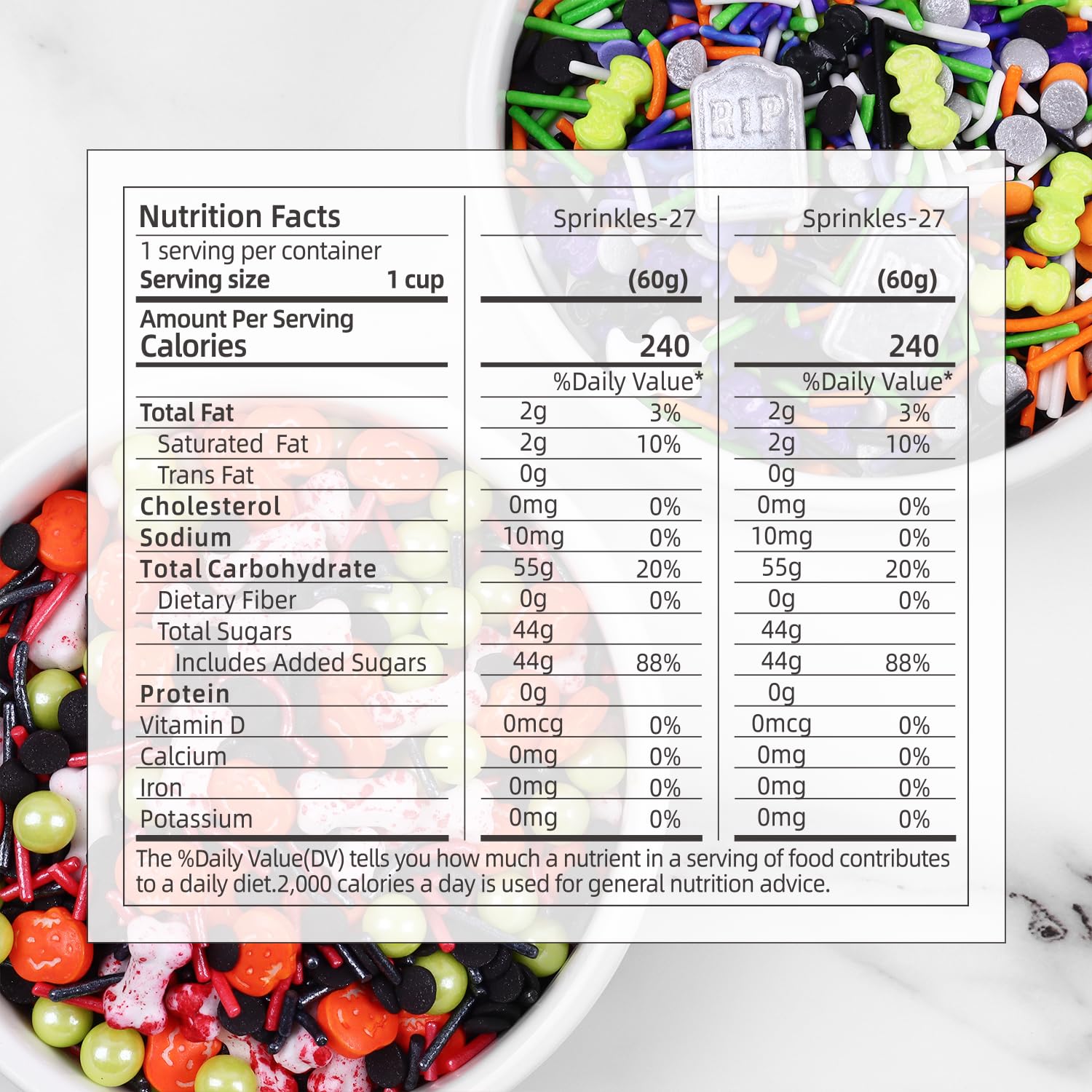- Halloween Sprinkles: Including candy bones, pumpkin cupcake toppers, tombstone cupcake toppers, jimmy sprinkles. Nut-free, Dairy-free, Non-GMO. Our halloween sprinkles meet American food standards and guard your and your family's health