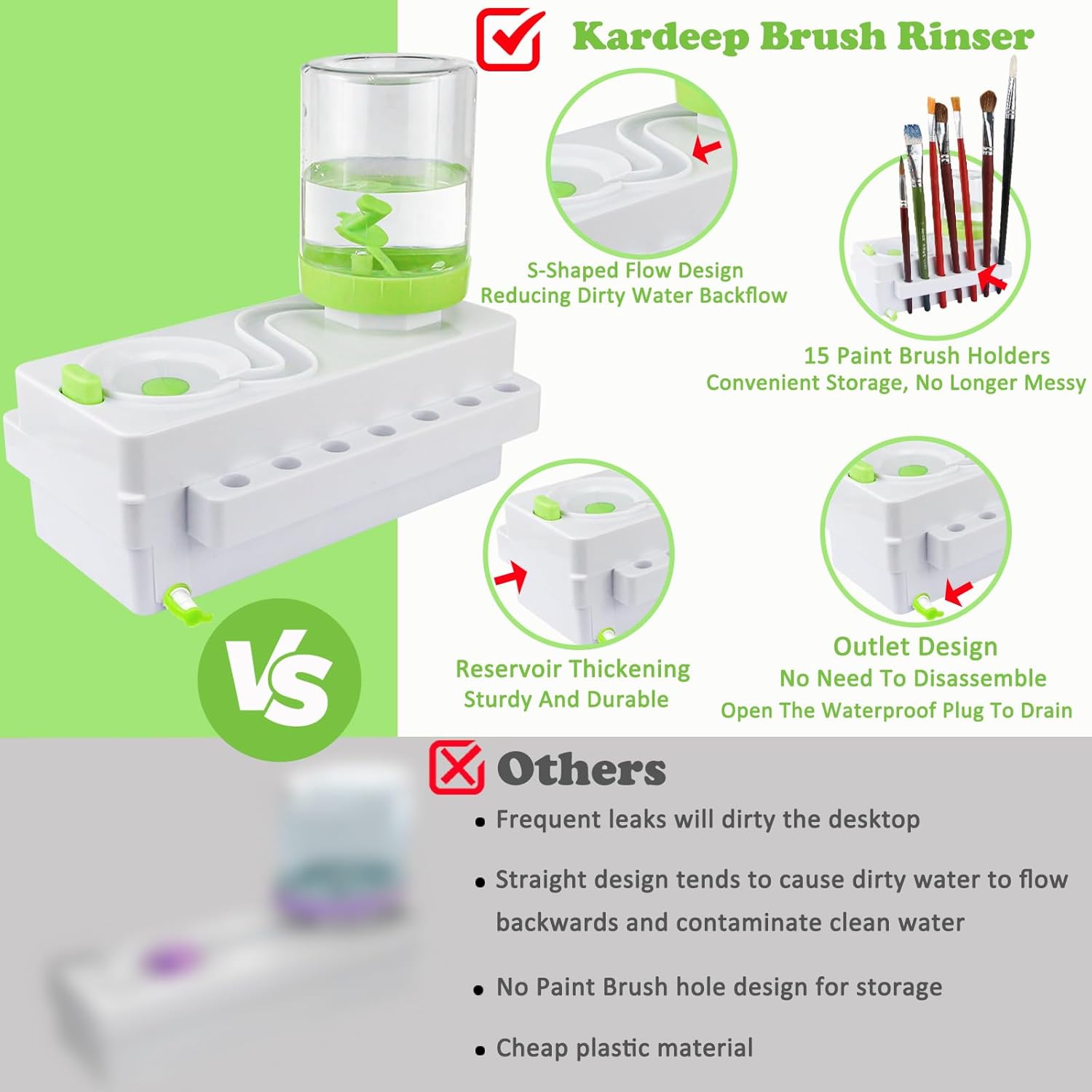 - 【2023 NEW PAINT BRUSH RINSER】No Water Leakage ! our paint brush washer are designed with enhanced Tap Water Circulation Design,just by pressing a button recycle dirty water and Automatic outflow of clean water to reuse.The anti-leakage function of our paintbrush cleaner is improved, there is no longer water leakage in use! Save time and effort,Focus on your artwork without interruptions.