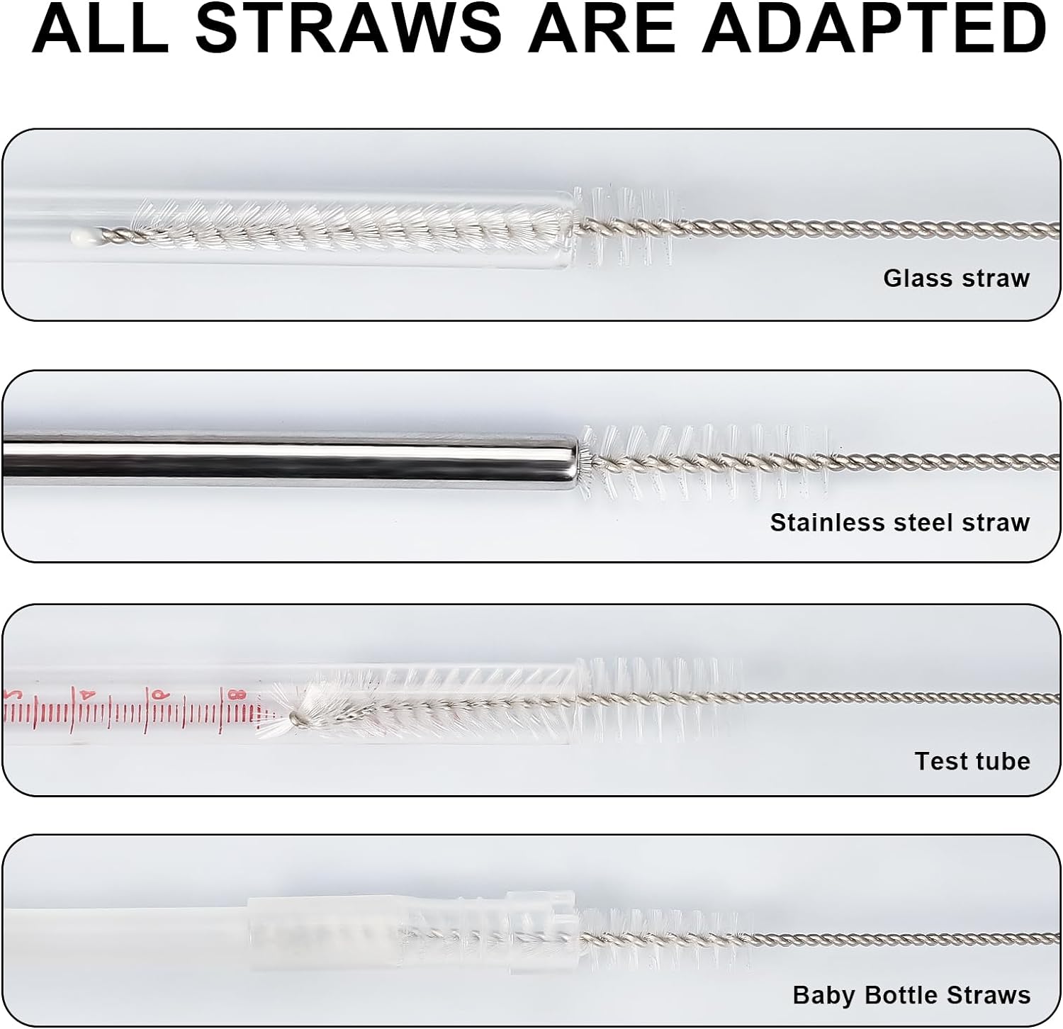 • Easy to Use: Bottle straw washing brushed has soft and durable bristles, you can insert it into the tube, rotate and remove to wash it. It generates foam easily, hard enough to scrub the dirty stuff. It is easy to clean the straw from top to bottom never scratch the inside of the straws.