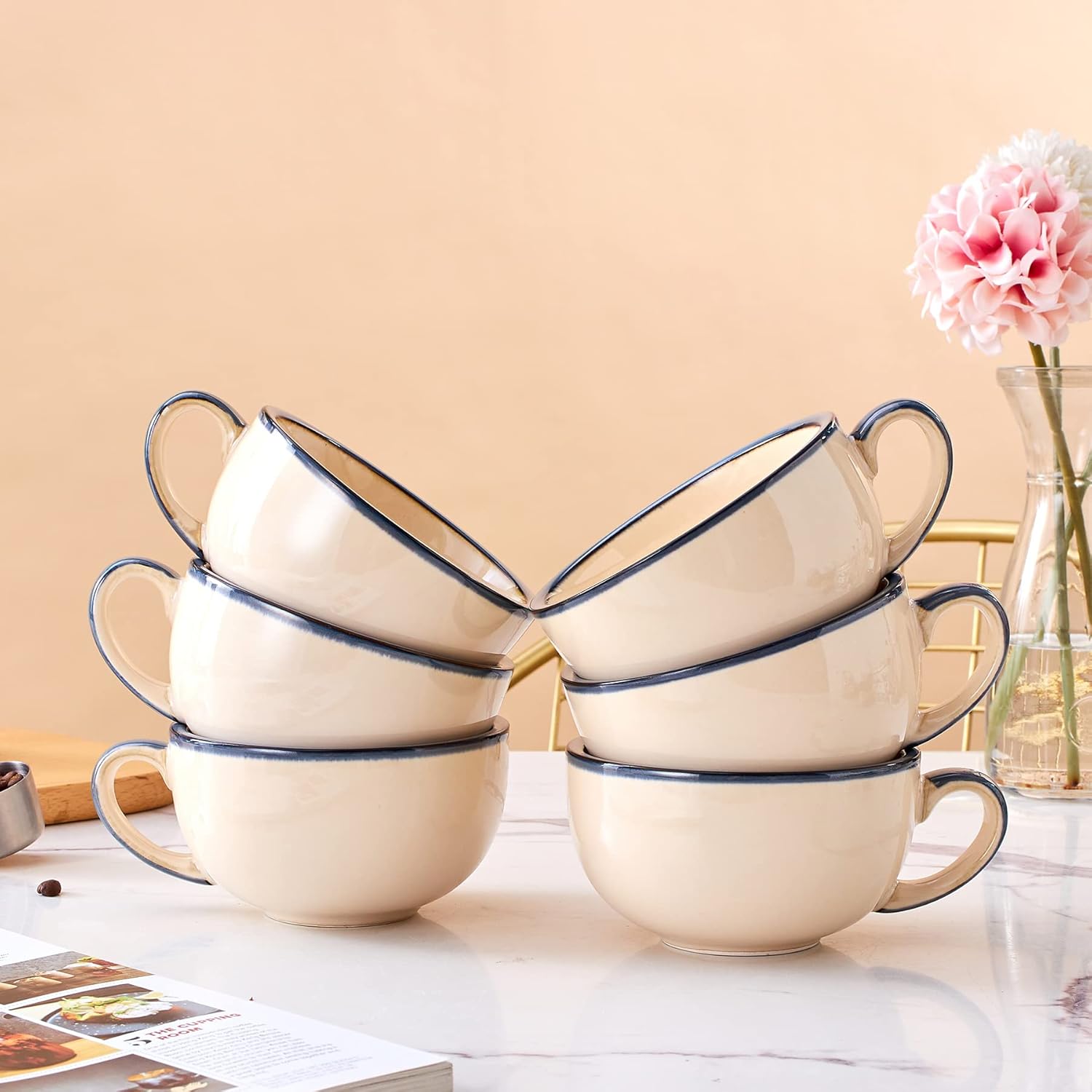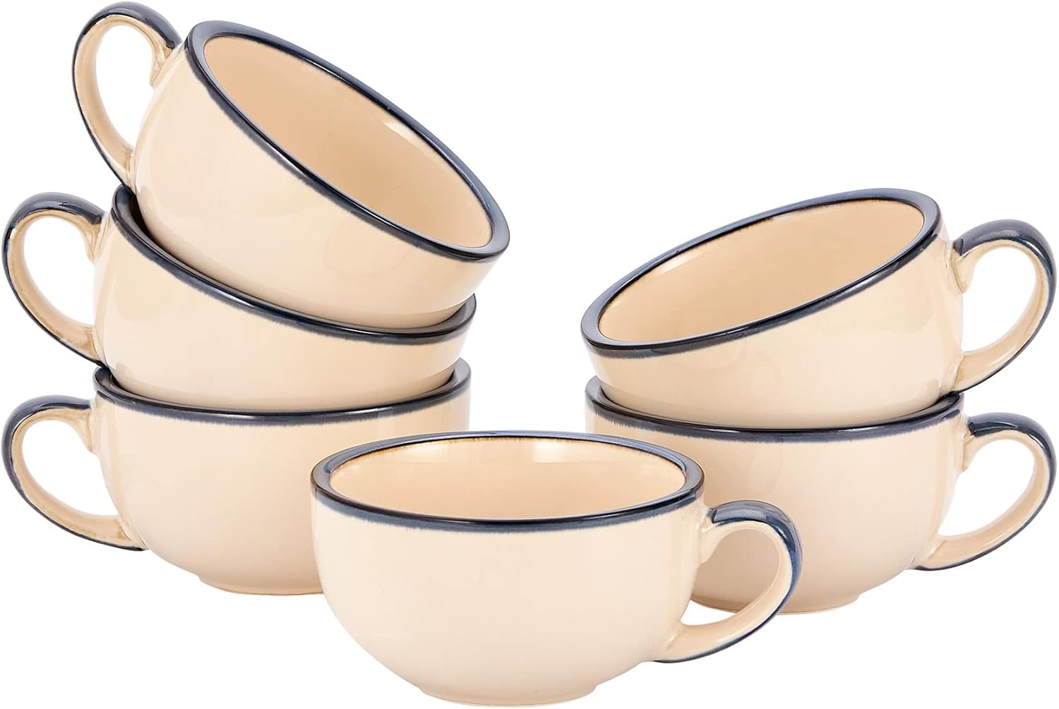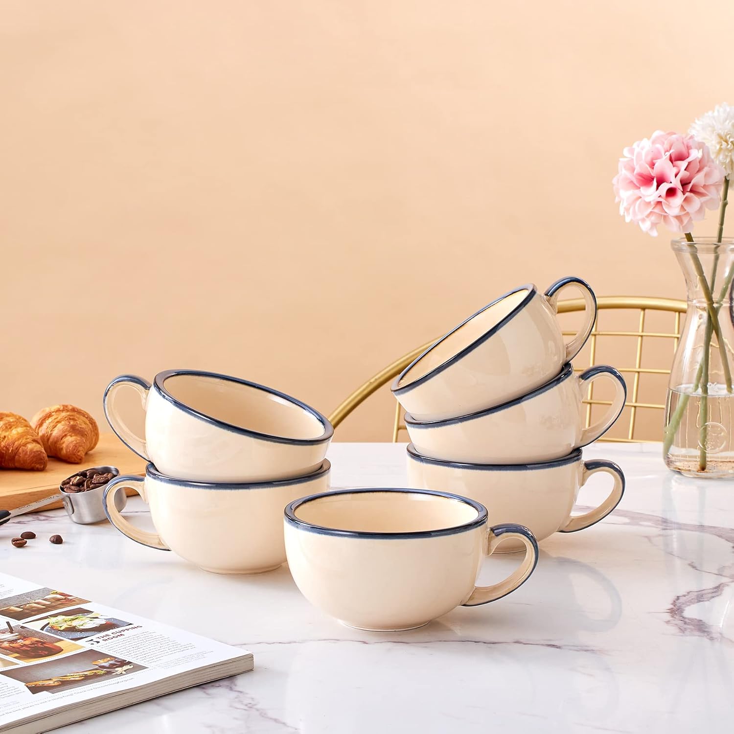 Set of 6 Cups Vintage Design 12 oz Professional Barista Ceramic Latte Art Cappuccino Cups Set (Beige * 6)