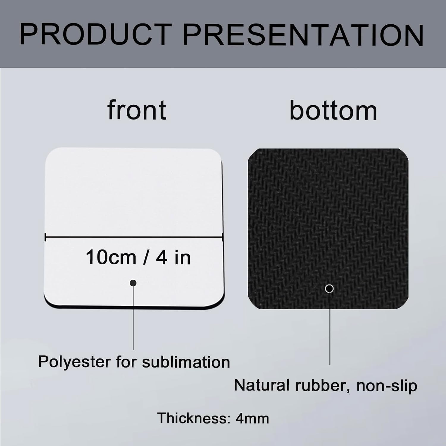 - 【Package Contents】100 PCS blank sublimation coasters, Product size: 4 x4 inches (10cm), thickness: 0.15 inch (4mm),square