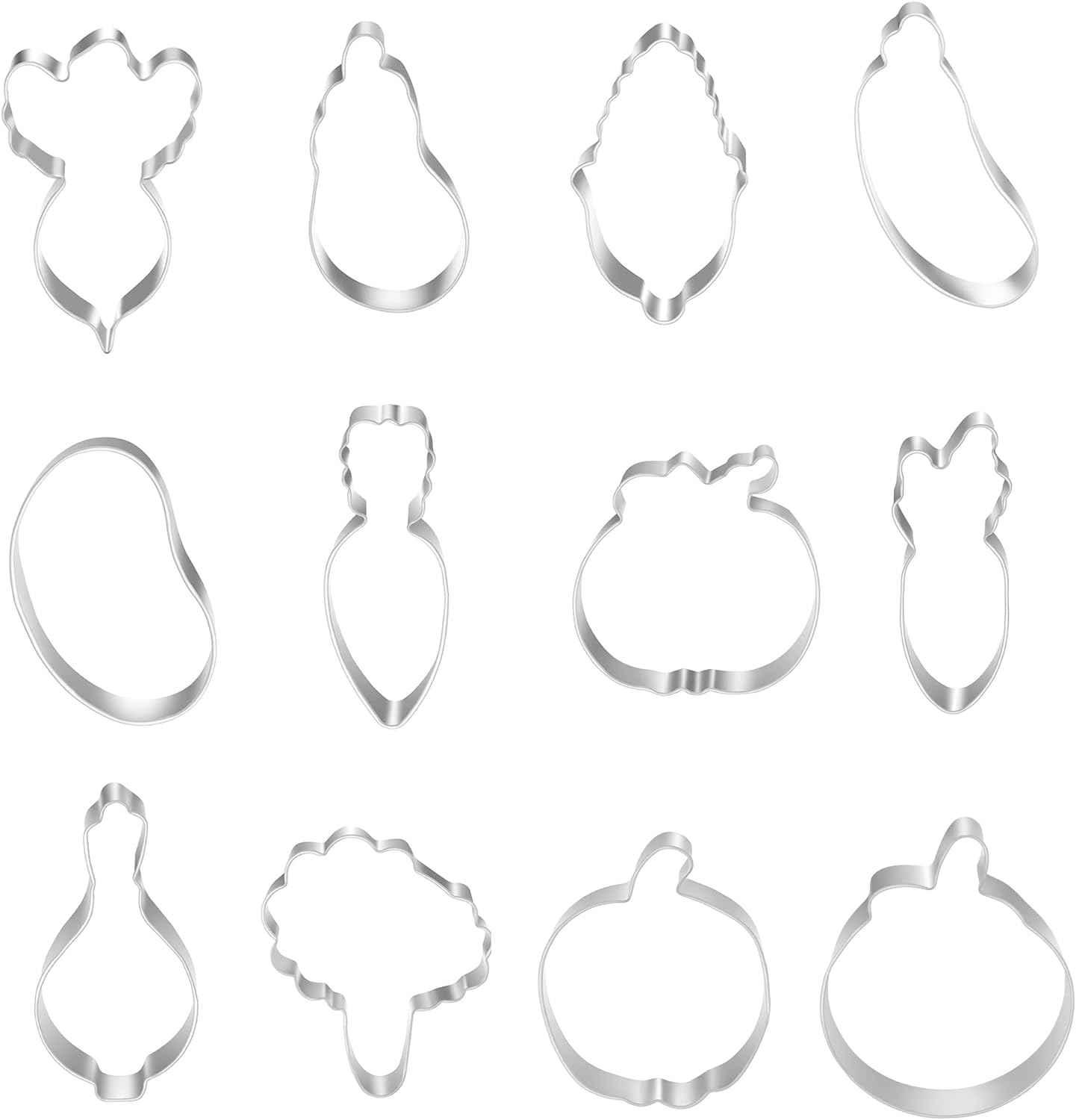 12pcs Vegetable Cookie Cutters set, Stainless Steel Fondant Cutters Set Pastry Biscuit Baking Clay DIY tools,By MrCookie