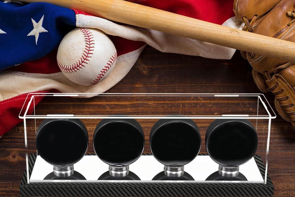 - [Hockey Pucks Container Storage]: Internal Measures 13.3 "X 3.8" X 3.9 ", base height 0.63", Holds 4 regulation sized hockey pucks, baseball, golf, and other souvenir displays. The addition of an acrylic mirror surface will make your collection even more eye catching.