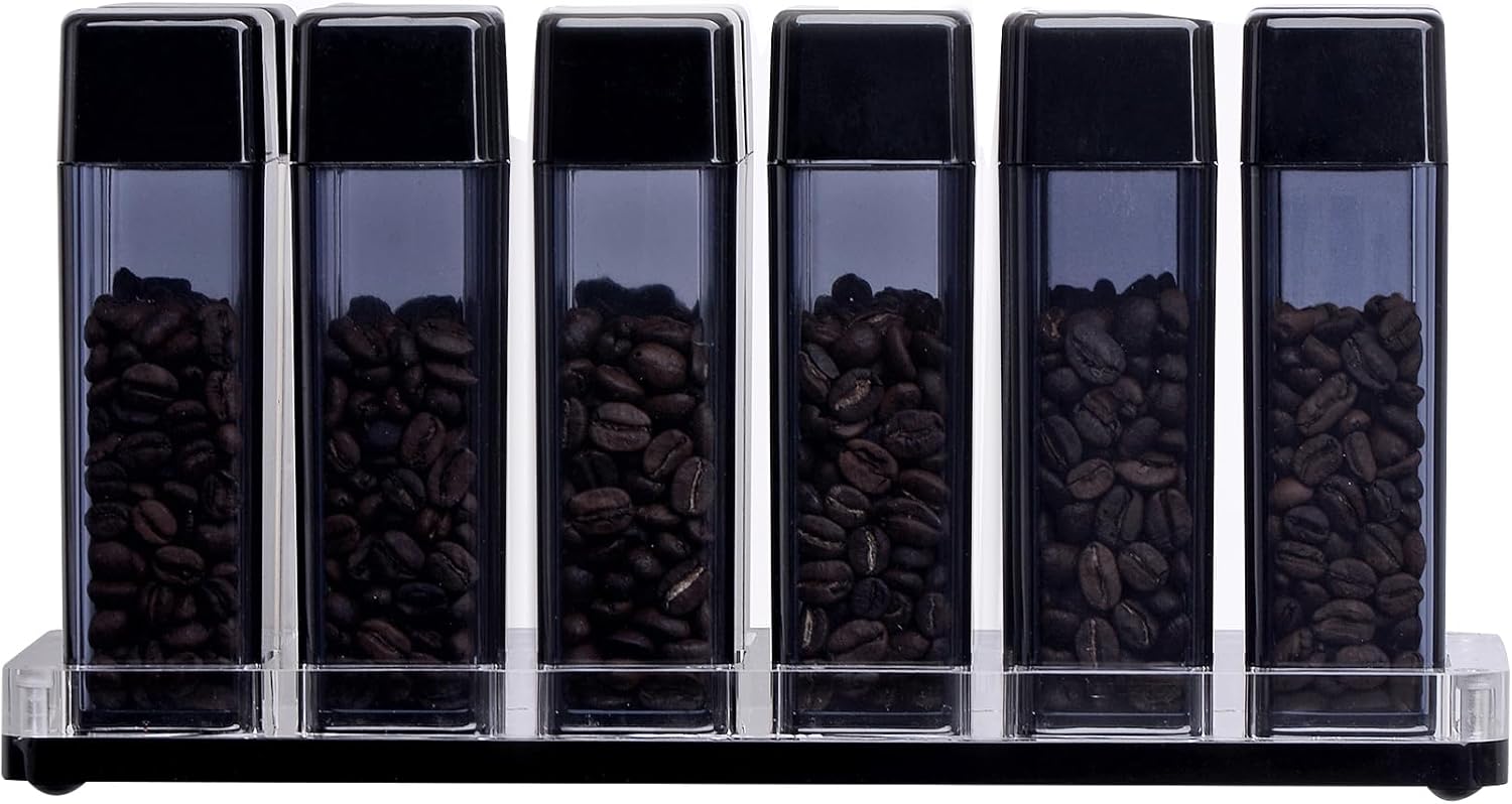 - CONVENIENT STAND & HOPPER - The stand is made from sturdy acrylic, able to store your beans in an organized way, and yet pleasant for your countertop. The set includes a mini-hopper for easy re-filling. Also suitable to carry for camping or on the go.