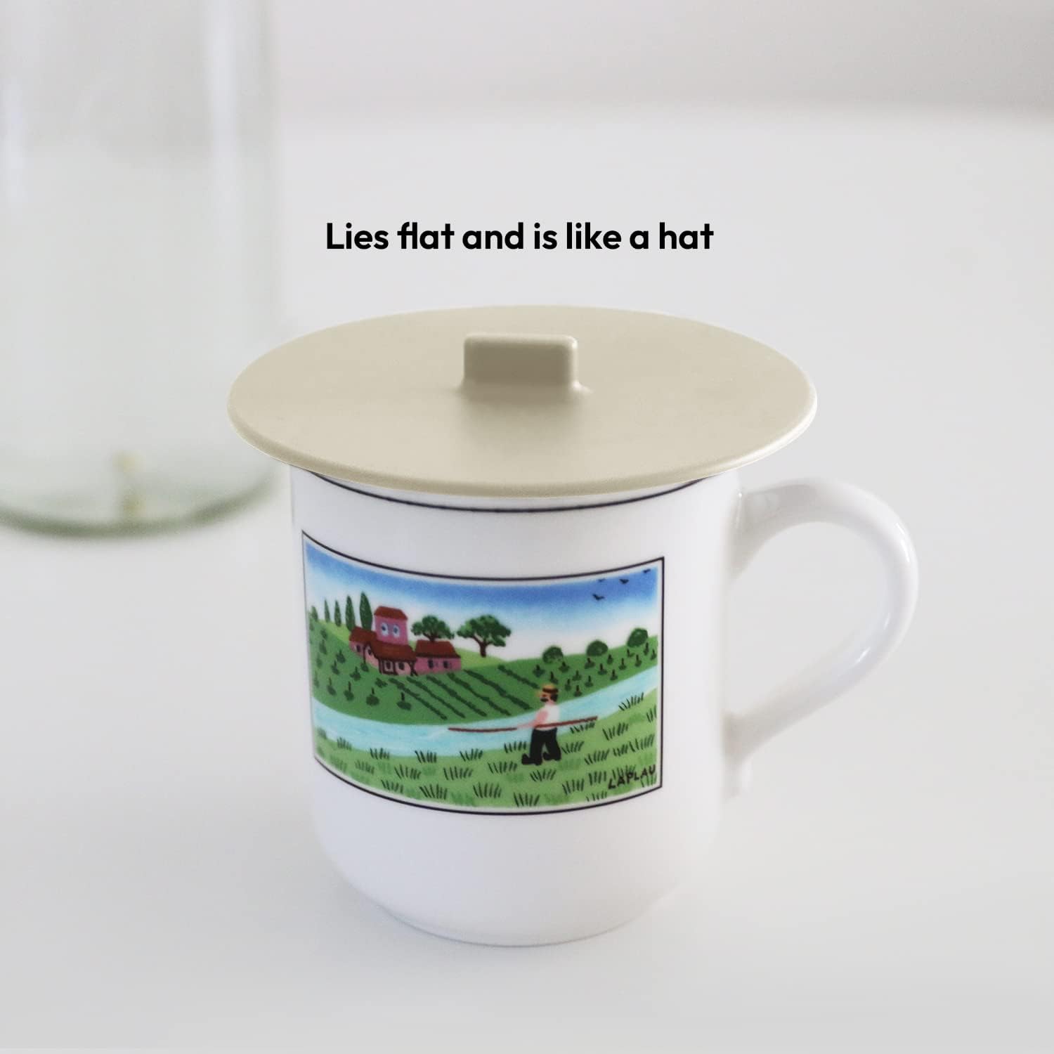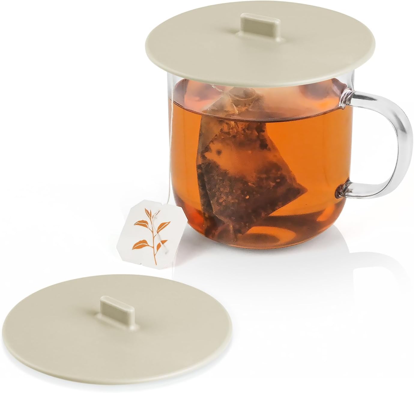 Carrotez Silicone Cup Covers for Drinks, 3.9 Inch Reusable Silicone Mug and Cup Lids for Steeping Coffee and Tea, Set of 2 - Cream
