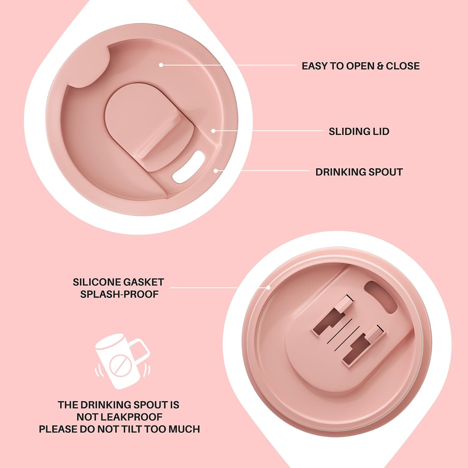 - Easy to Clean - In most cases, just rinse with clean water and the sides of the cups will be clean and tidy. (Caution: Lid is not leakproof and will not prevent spills)
