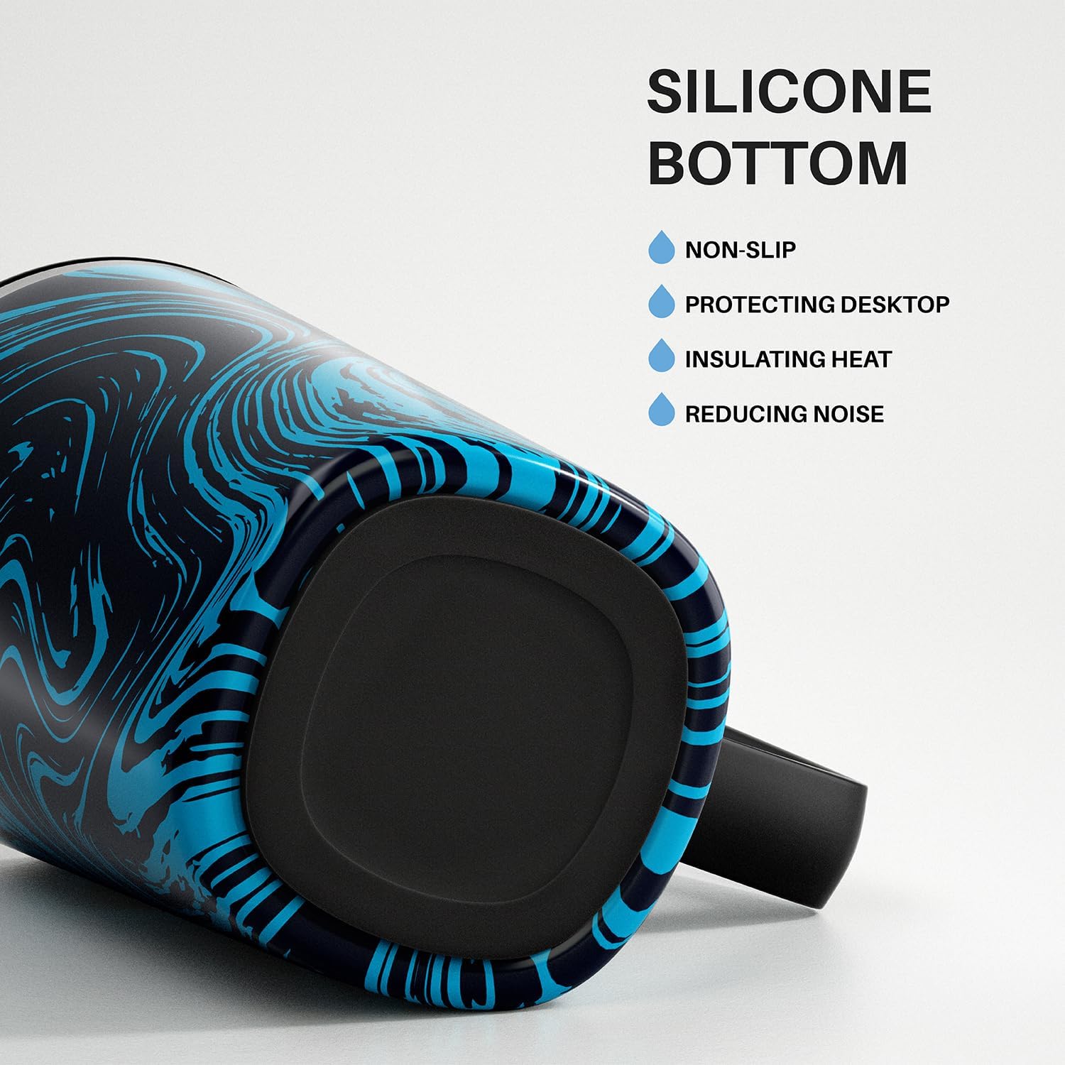 Ideus Vacuum Insulated Coffee Mug, 16oz Reusable Stainless Steel Thermal Double Walled cup with Handle and Slider Lid for Hot & Cold Beverages, BPA Free (Blue Zebra)