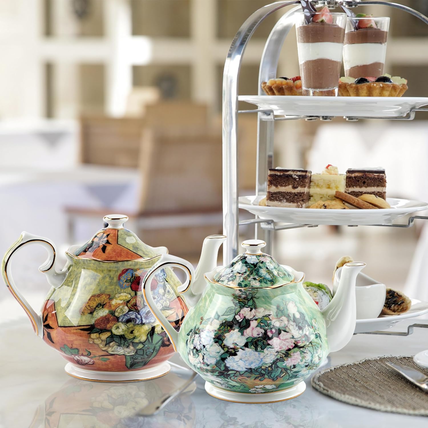 - Art Decoration: Beautiful floral pattern decorated with glittering gold trim, exquisite and elegant. Outside daily use, he European-style teapot is the collection and decoration on your tabletop or cabinet
