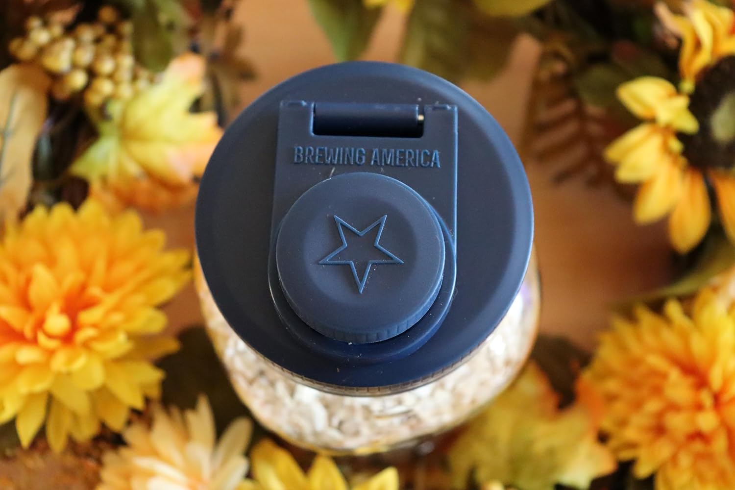 - Each Bottle Includes Brewing America Wide Mouth Mason Jar Pour Lid that is leak-proof seal and BPA Free and a 1-pint (16 ounce) Azure jar.
