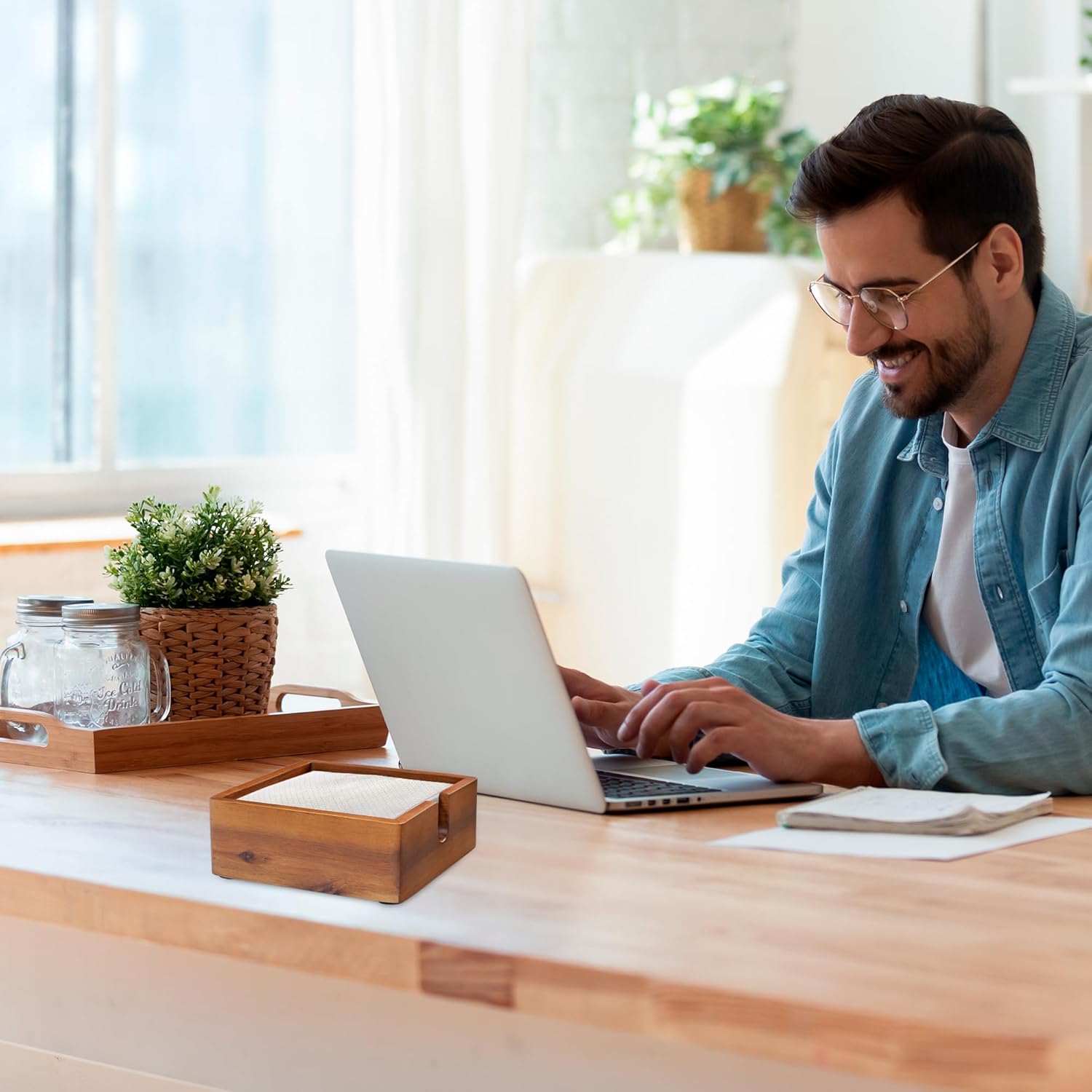 Acacia Cocktail Paper Napkin Holder Square 5.4x5.4 inches, Wood Flat Napkin Tray, Cocktail Napkin Caddy For Kitchen Décor, Restaurant Countertop Bar Accessories