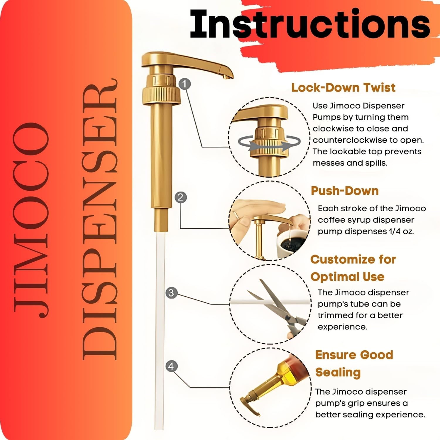 - CONVENIENT DISPENSER PUMPS: Comes with 6 Jimoco dispenser pumps for precise, mess-free syrup dispensing. Enjoy easy and accurate flavoring with every use.