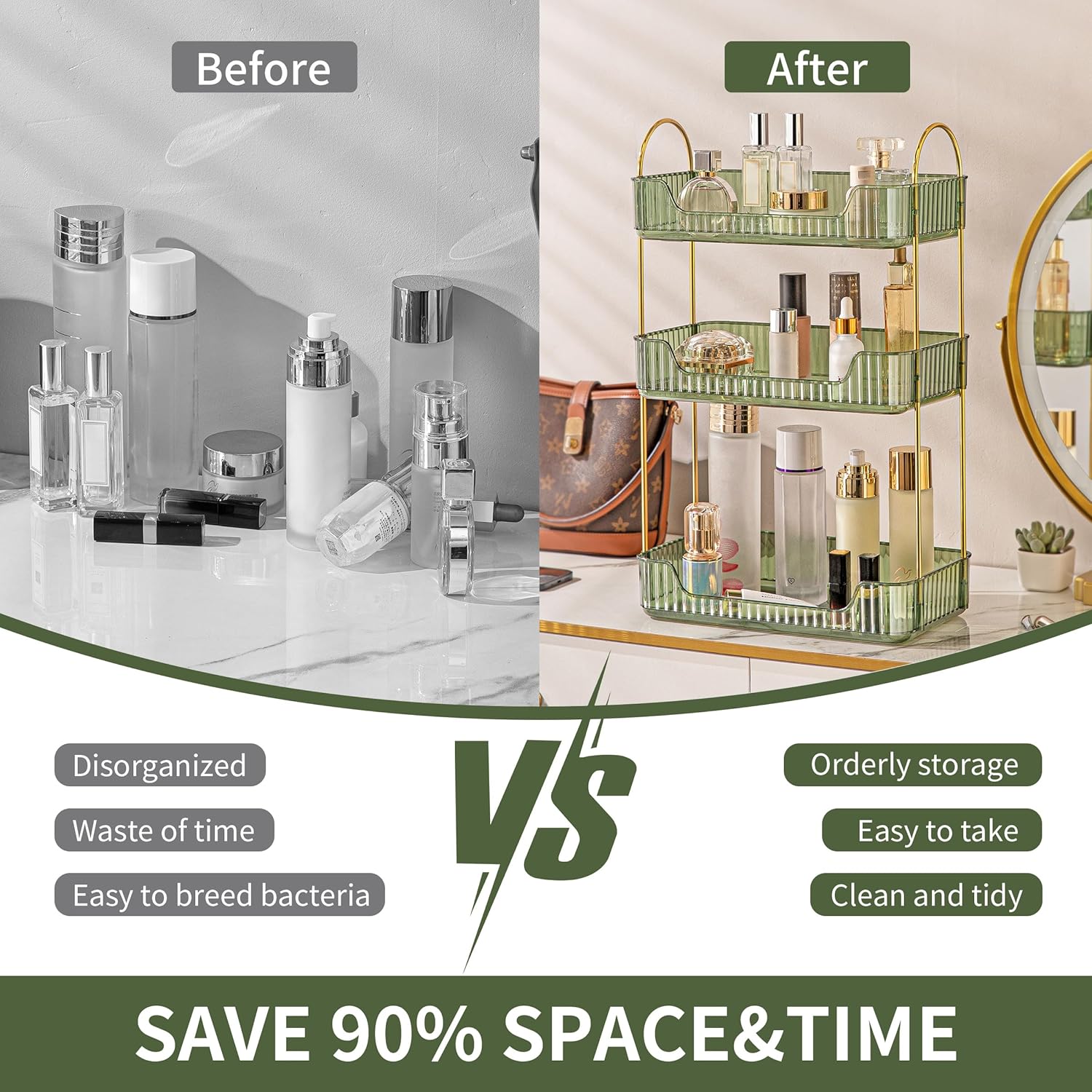 - 【Service & Gift Options】The vanity organizer is a great gift option for any special day, no one can resist this thoughtful gift. We want to be able to provide you with quality after-sales service, so please contact us on Amazon if you have any questions!