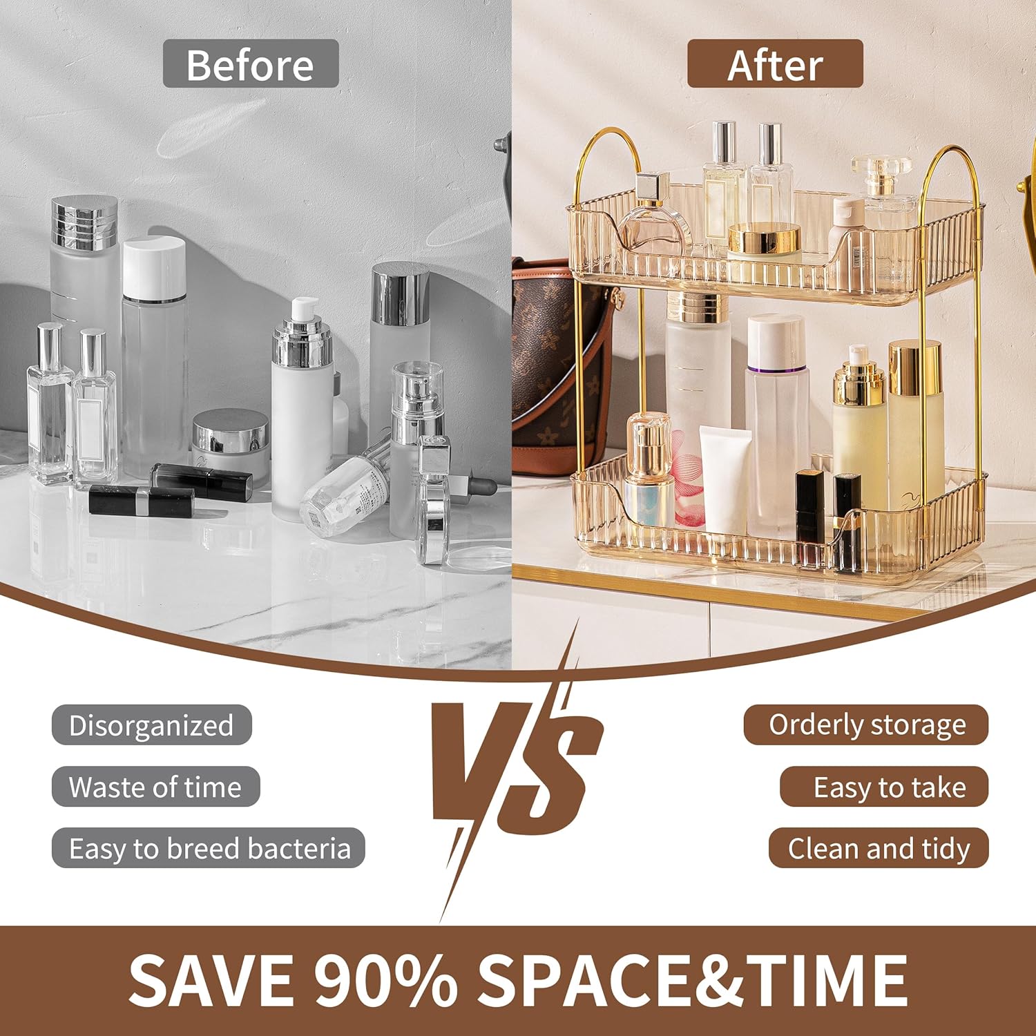 - 【Large Capacity Storage】Multi-layer optional bathroom organizercounter shelf, meets your different needs, from desktop flat to three-dimensional storage, put more items in the same area, save 90% desktop space, and clean and tidy