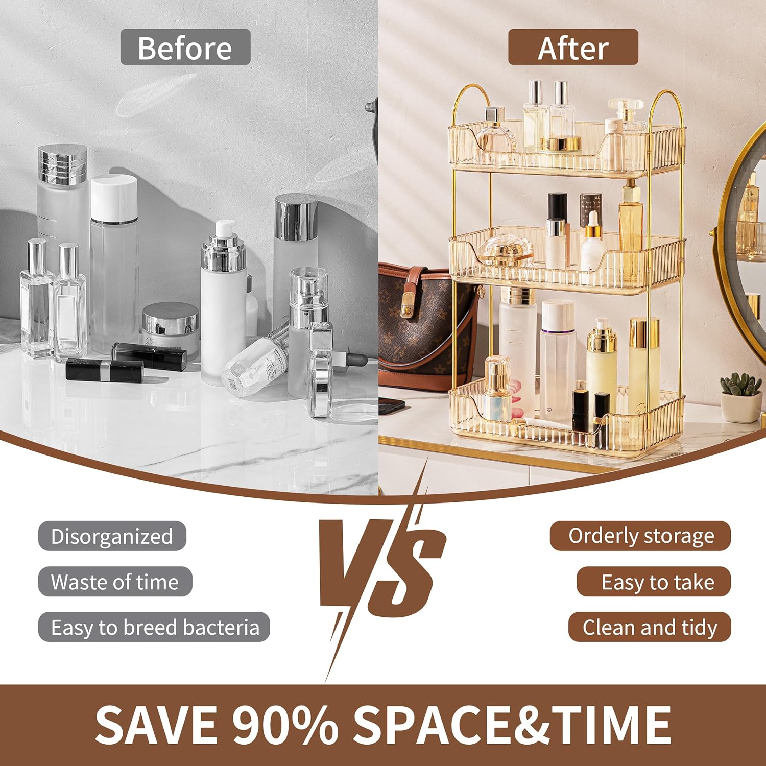 - 【Large Capacity Storage】Multi-layer optional bathroom organizercounter shelf, meets your different needs, from desktop flat to three-dimensional storage, put more items in the same area, save 90% desktop space, and clean and tidy