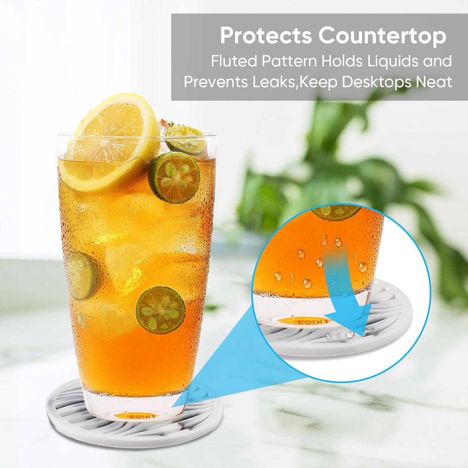 - DURABLE & PRACTICAL:Silicone coasters can be used for a long time,stain-proof,waterproof,heat-resistant,can be used for cold or hot drinks in any occasions,suitable for desktop made of any material,such as wood,granite,glass,marble,etc,to protect the surface of countertops or furniture from being scratched.