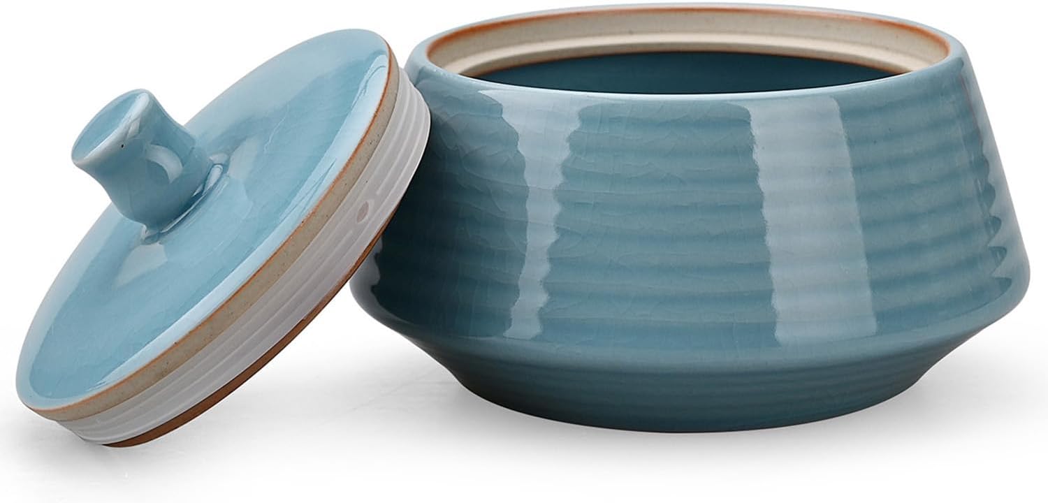 - 【SUITABLE CAPACITY】: About 13.53 OZ(400ml), Dimensions - 4.40 inches in diameter, 3.35 inches in height. Small and Exquisite Ceramic Food Storage Jar.