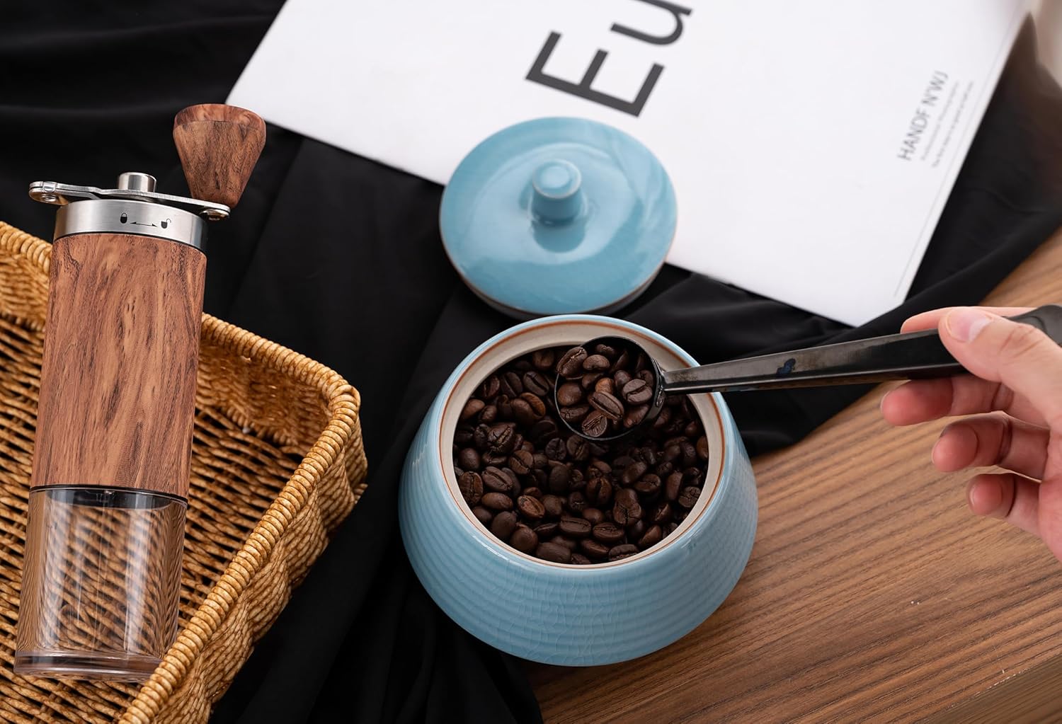 Retro Kitchen Ceramic Canister, 13.53 FL OZ (400 ML) Vintage Food Storage Jar for Tea, Coffee Beans, Herb, Candy, Spices, Nuts (Blue(ICE))