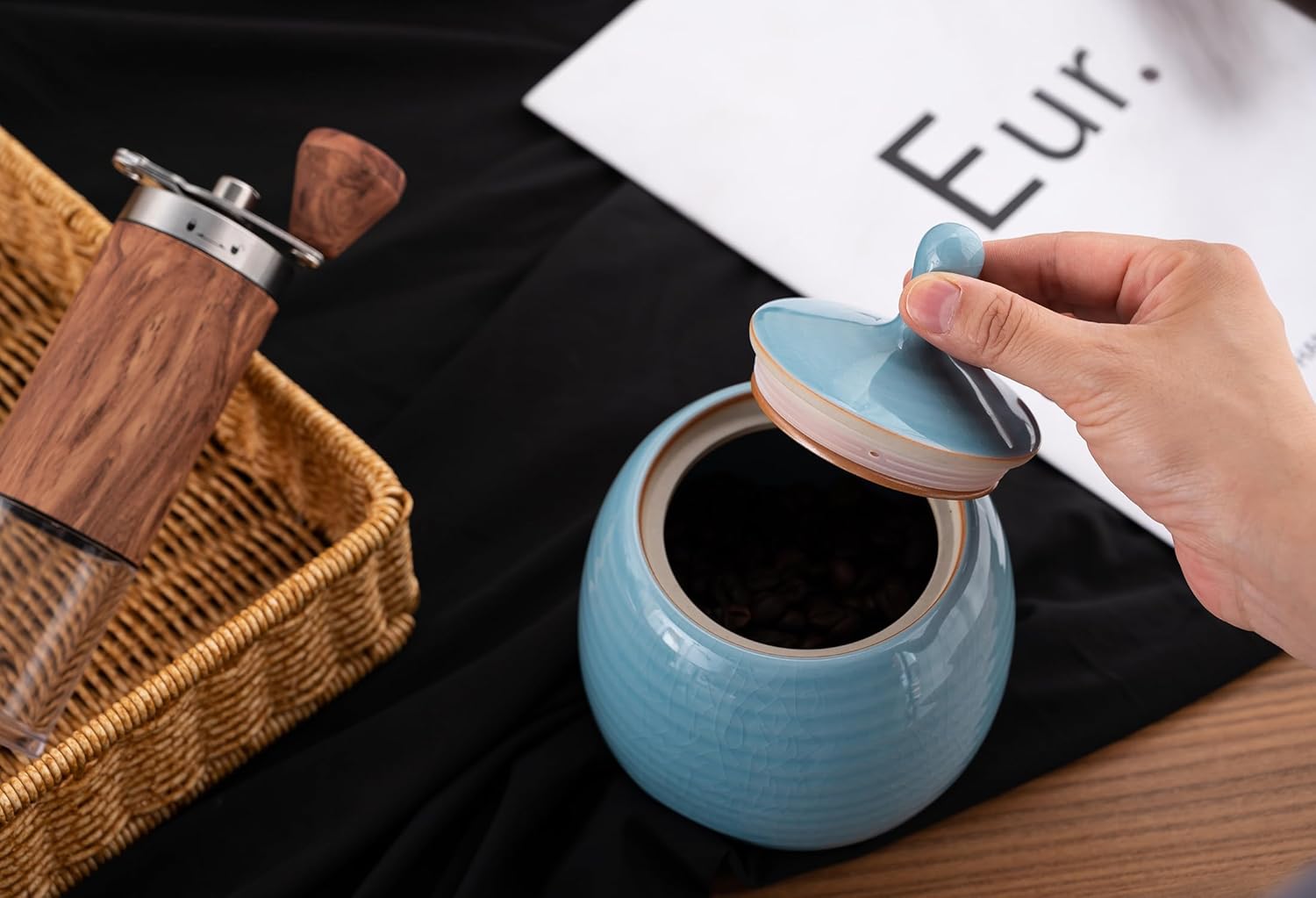 Kitchen Canisters Vintage Ceramic Food Storage Jar with Airtight Lid for Tea, Coffee, Herb, Sugar, Spice, Nuts (Blue(ICE))