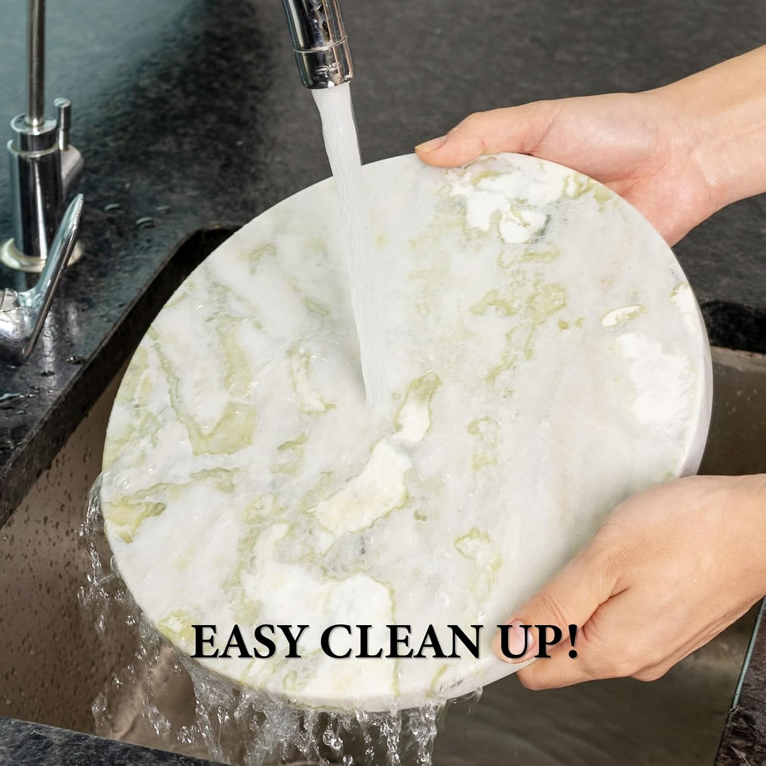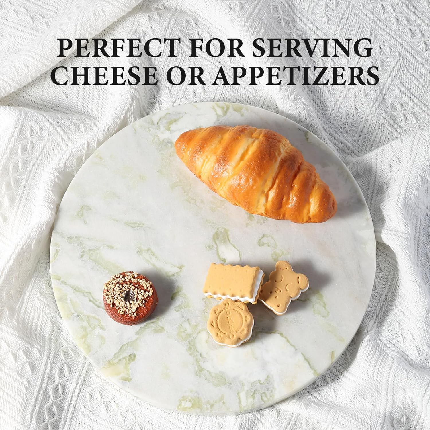 Koville African Natural Marble Cutting Board for Kitchen, 11inch Round Hand Crafted Marble Slab for Cheese, Charcuterie, Pastry Board - Wedding Gift, House Warming Gift