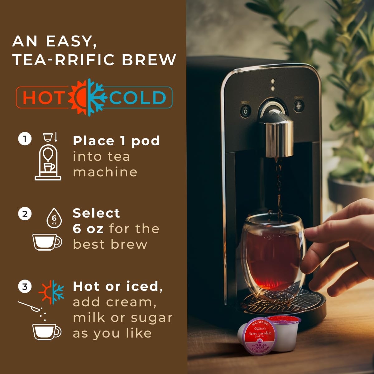 - For easy enjoyment & excellent as tea gifts. No need to wait, our k tea pod brews with ease. Simple, no mess for a delectable tea ritual at work — they're also wonderful berry tea for any occasion: holidays, birthdays, you name it.