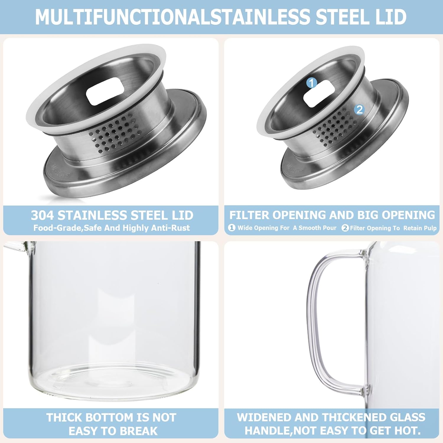 - SERVING FOR ALL OCCASION: This glass tea pitcher is widely used for water, iced tea, hot tea, fruit-infused water, homemade beverages, cold brew coffee, sangria, juice, lemonade, milk, wine, cocktail, light smoothie, etc. Suitable for daily needs at home, outdoors, parties, holiday gifts, etc
