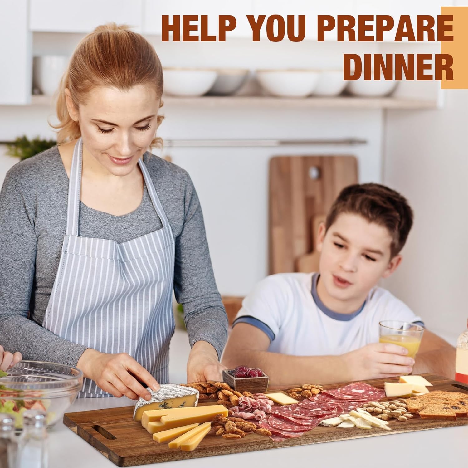 Skylety 4 Pieces 35.4" Acacia Wooden Cheese Serving Board with Handles Large Charcuterie Board Wooden Cutting Board for Appetizers Food, Cheese Board for Bread Meat Display Kitchen Decoration