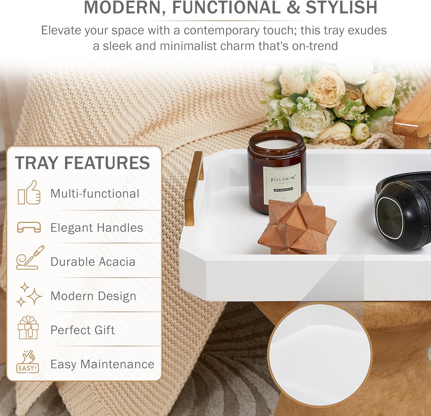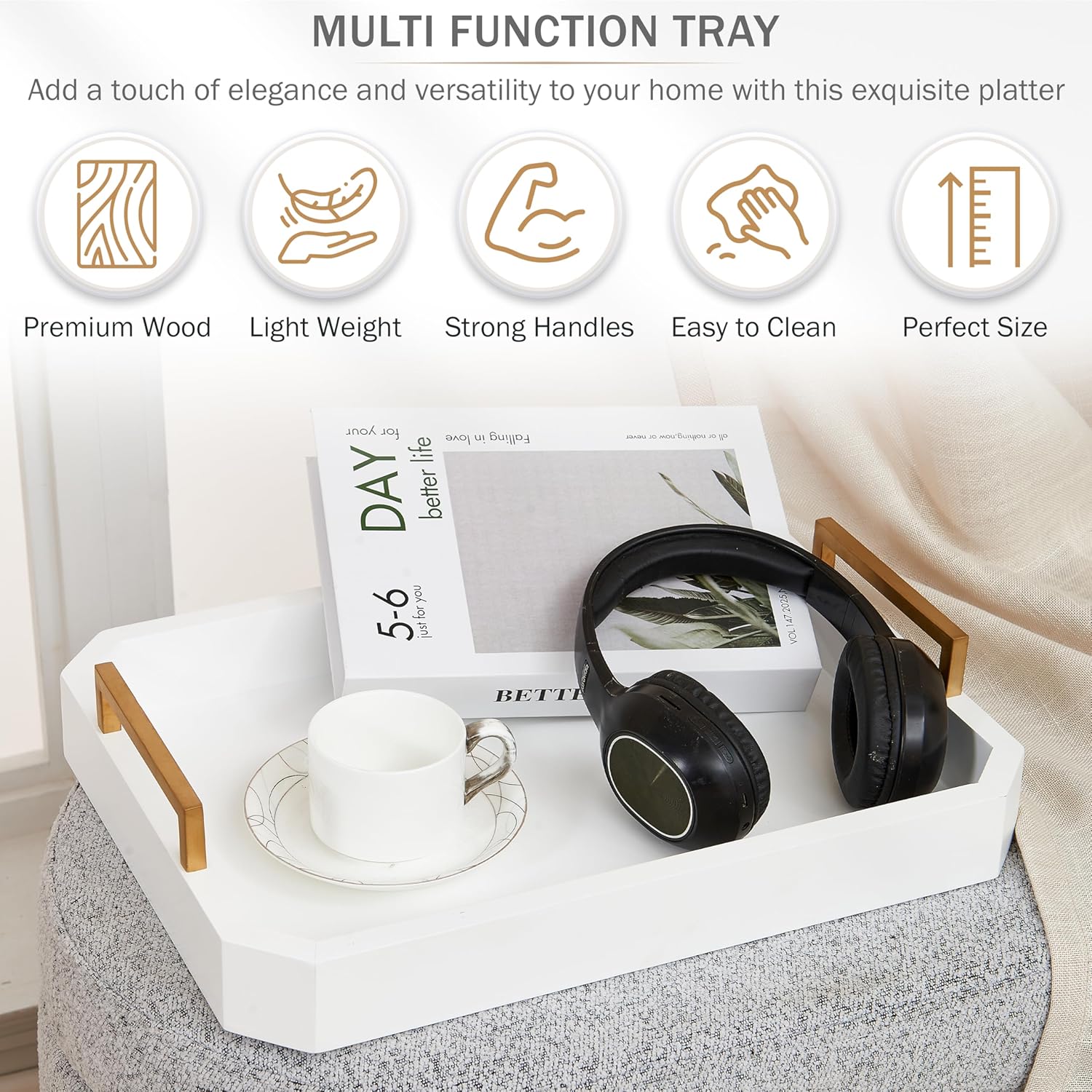 - ✅ MODERN SERVING/OTTOMAN TRAY: Add a touch of elegance and versatility to your home with our exquisite serving platter. Crafted with precision and attention to detail, this stunning couch tray is designed to enhance your living space and elevate your style.