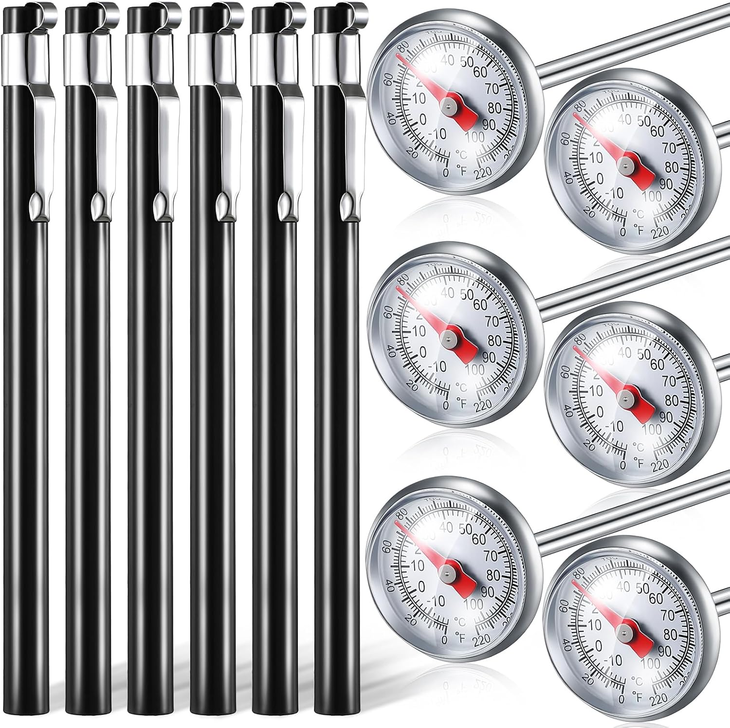 Xuhal 6 Pcs Stainless Steel Kitchen Thermometer with 5 Inch Long Stem 1 Inch Dial Thermometer Milk Frothing Food for Oven Probe Meat Grill BBQ Cooking Chocolate Water(Black)