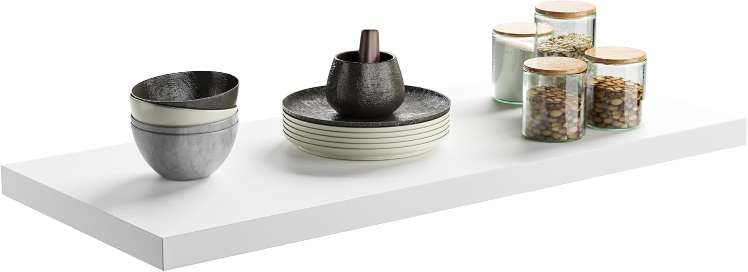 - ππ³ππππ ππππππππ πΎπππ πΊππππ πππ ππ 1: Wall Shelf Size 24"W x 10"D x 1"H, Maximum Weight Capacity:25 lbs. large size shelf decor can store many bulky items, perfect for laundry, garage, kitchen, office and living room for clothes, laundry supplies, tools, glass utensils, artwork, books, photographs, etc.