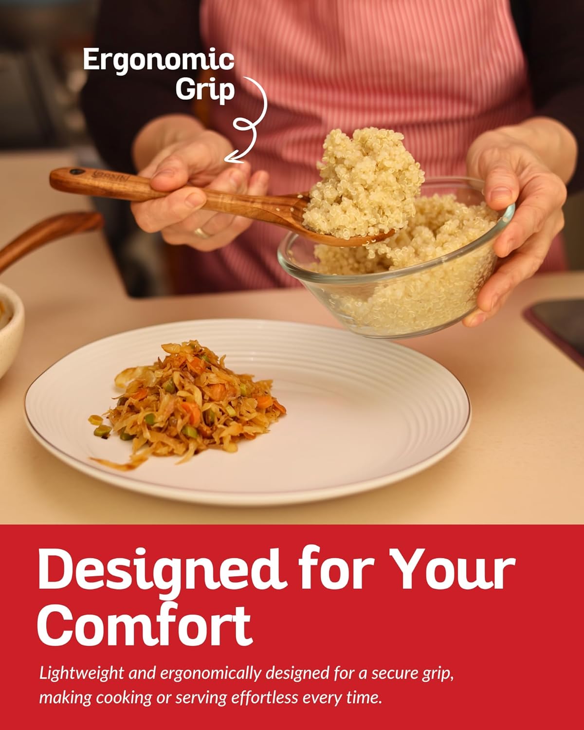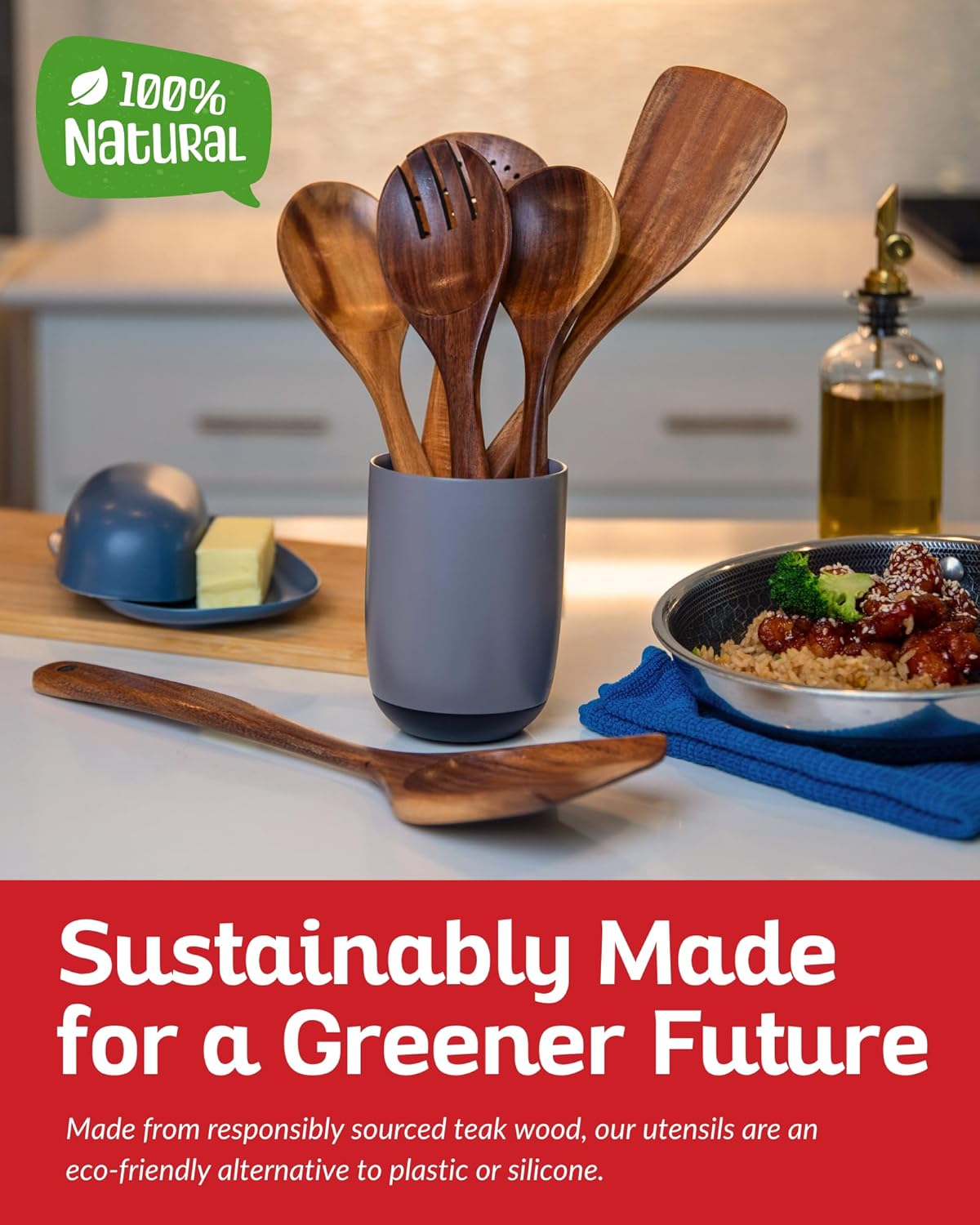 - DEAL GIFT FOR COOKING ENTHUSIASTS: These wooden spoon set are beautifully crafted from teak wood which gives these Wooden Utensils an aesthetically pleasing ambiance to any kitchen. Perfect for loved ones who like to cook, chefs or even for your own personal use.
