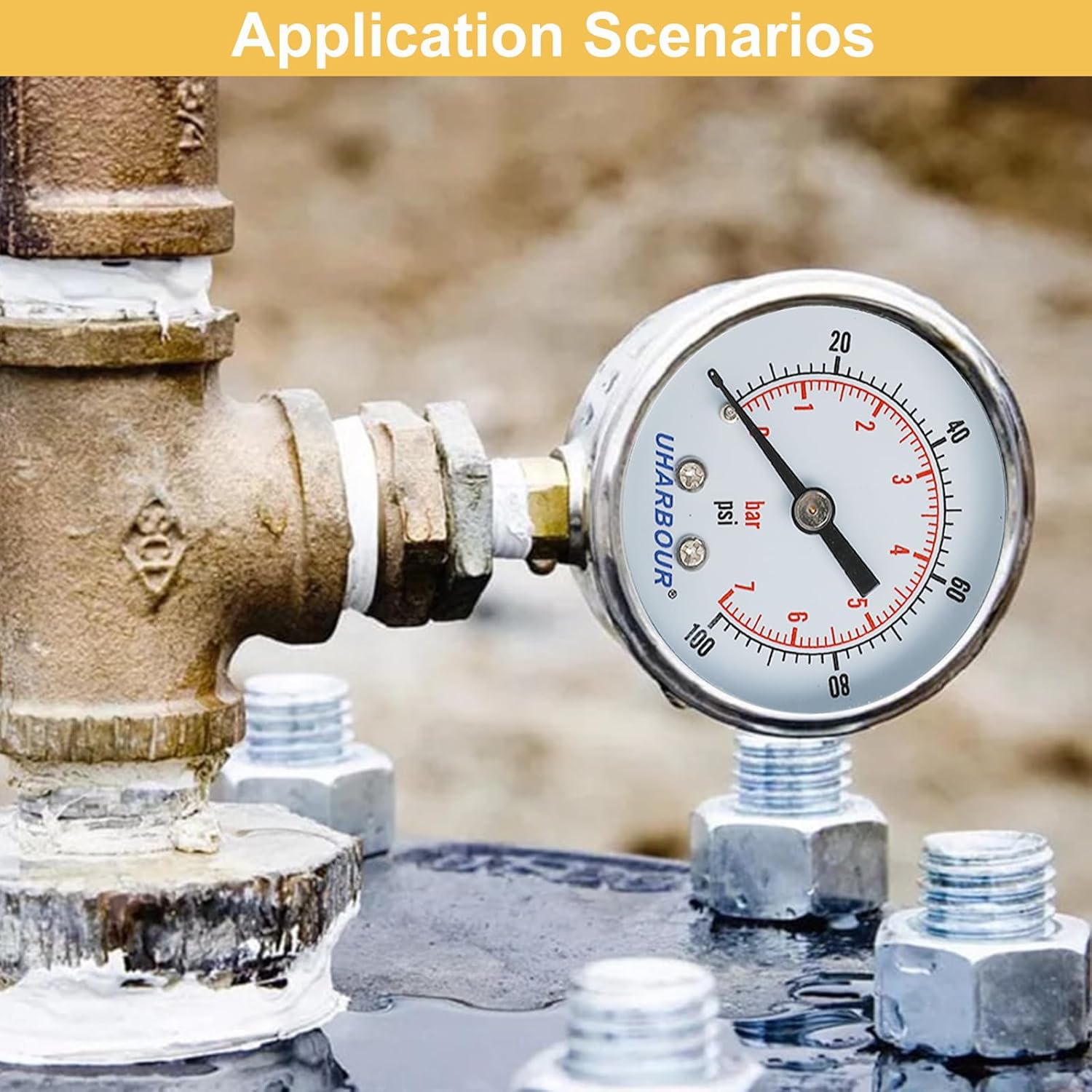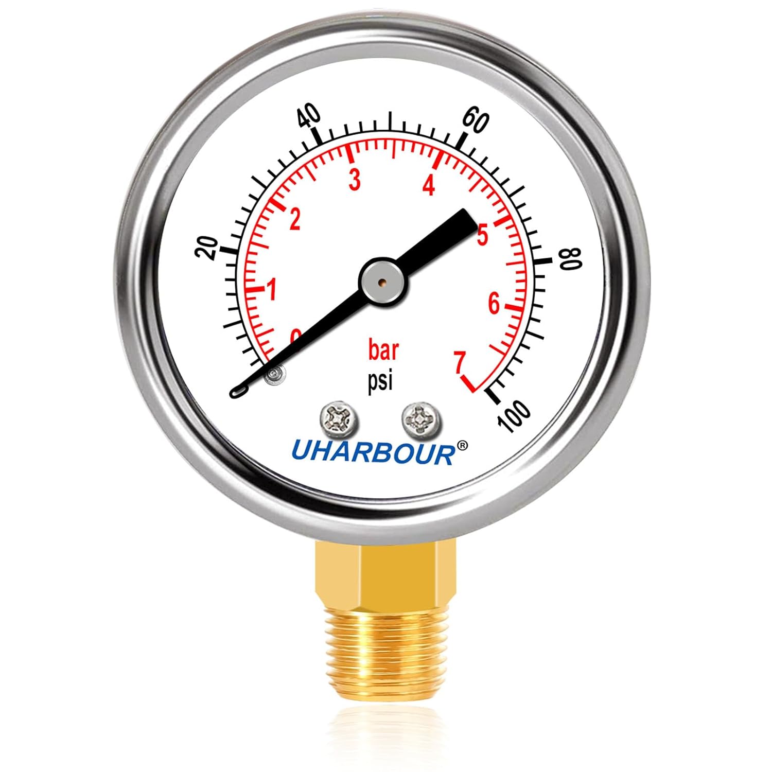 - Wide Pressure Range: Ranging from 0 to 100 Psi, this pressure gauge 1/4 NPT offers a broad pressure measurement range, making it suitable for various applications such as air compressors, hydraulic systems, and more.